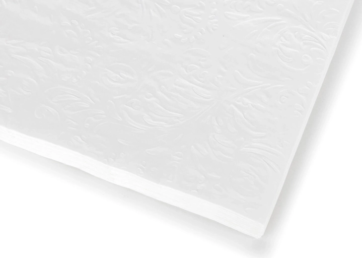 Ti beli prtički z diskretnim reliefom so idealni za slavnostne mize, družinska praznovanja in vsakodnevne obroke. Zahvaljujoč triem slojem so prijetno mehki, hkrati pa čvrsti in dobro vpojni. Univerzalna velikost 33 × 33 cm zagotavlja udobje pri uporabi doma, v šoli ali na poti.