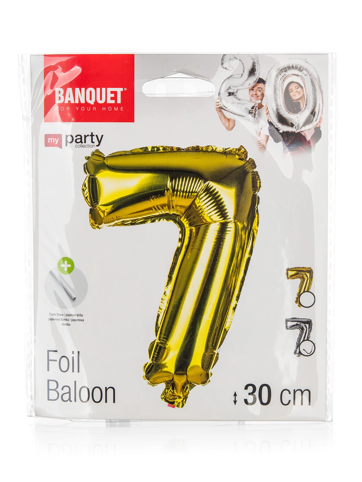 Majhen, a izrazit folijski balon številka 7 s sijočo površino bo vašim praznovanjem dodal takojšen šarm. Zaradi kompaktne velikosti 30 cm je idealen za mizo, sladki kotiček, fotokotiček ali kot dopolnilo večjim balonskim aranžmajem. Mešanica zlate in srebrne barve omogoča preprosto usklajevanje z drugo dekoracijo.