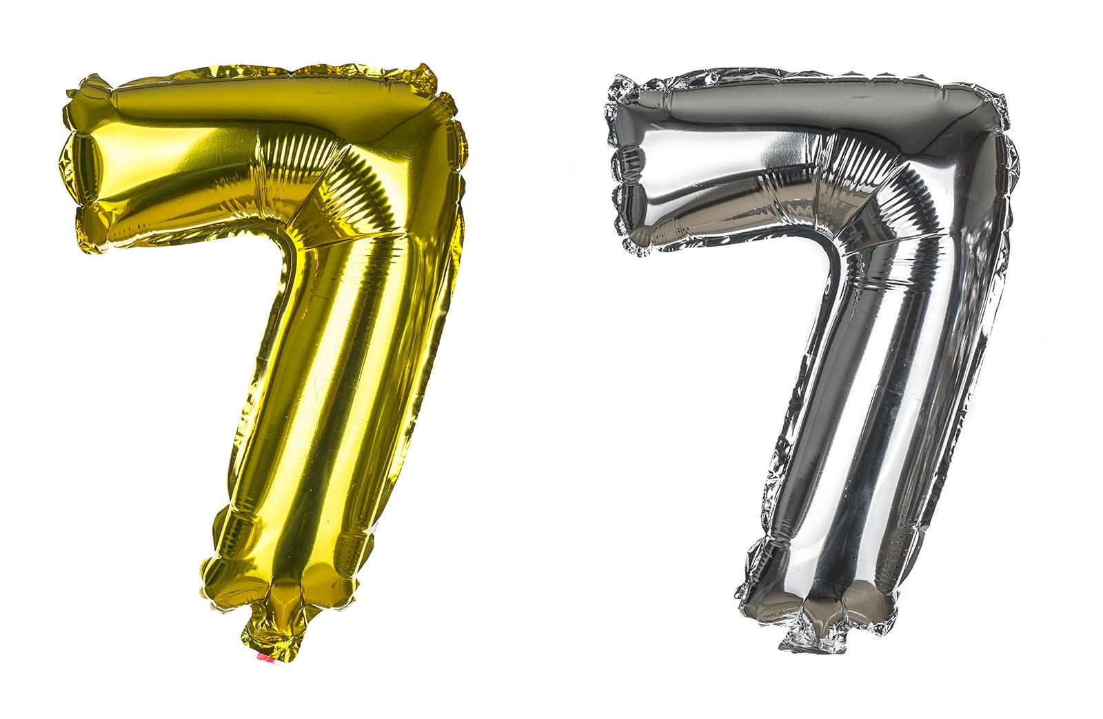 Stilni folijski balon v obliki številke 7, visok približno 30 cm, odlično okrasi rojstne dneve, obletnice in tematske zabave. Del pakiranja je papirnata slama za enostavno napihovanje in vrvica za obešanje. V paketu najdete mešanico barv – zlato in srebrno z sijočo kovinsko površino za resnično učinkovit videz dekoracije.