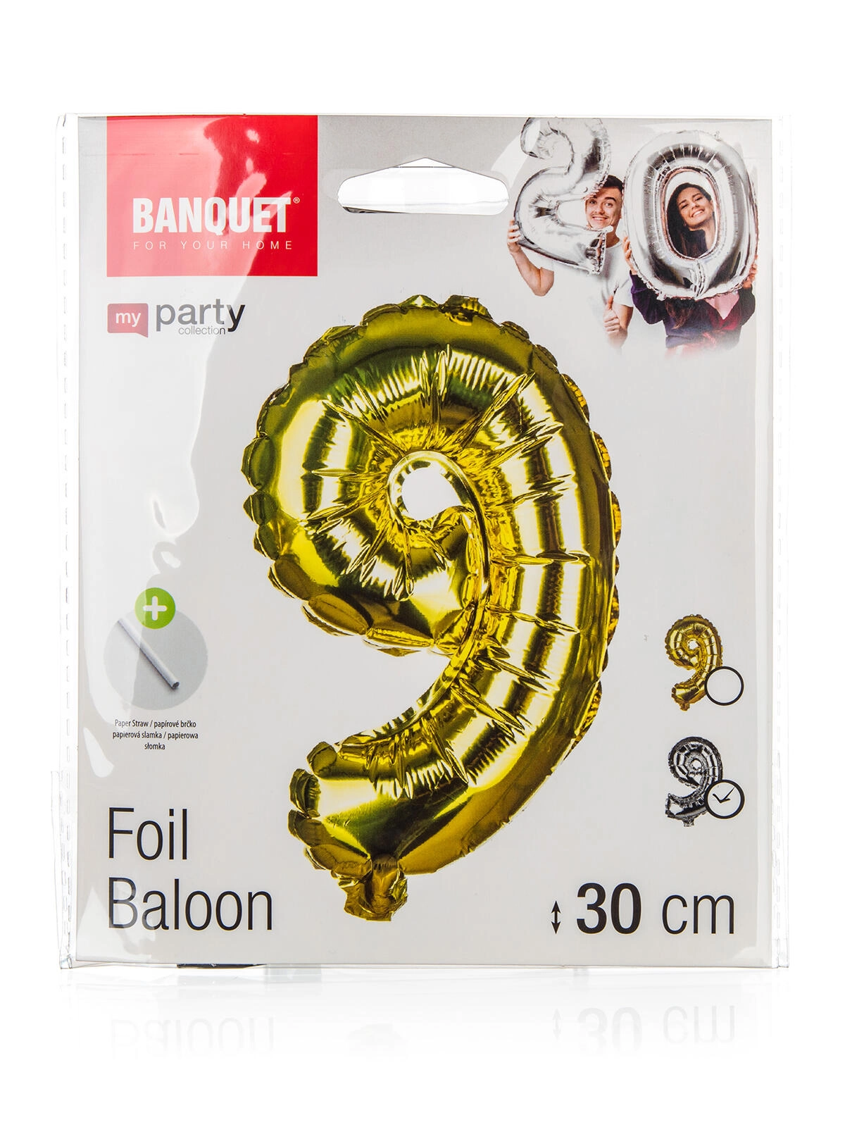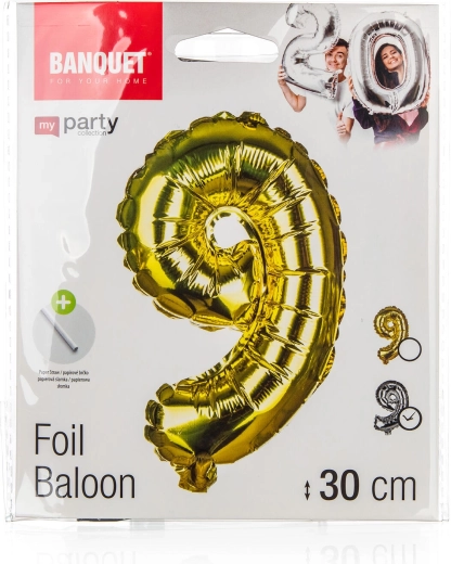 Proslavite rojstni dan in obletnice v slogu z foliastim balonom številka 9 višine približno 30 cm. V paketu prejmete zlat ali srebrn model, priročno papirnato slamico za napihovanje in vrvico za obešanje. Idealno za zabave, vrtne zabave in piknike.