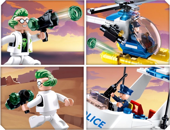 Gradbeni set Sluban Policija združuje ladjo in helikopter za ustvarjalno otroško igro. Varni in vzdržljivi deli za otroke od 6 let dalje.