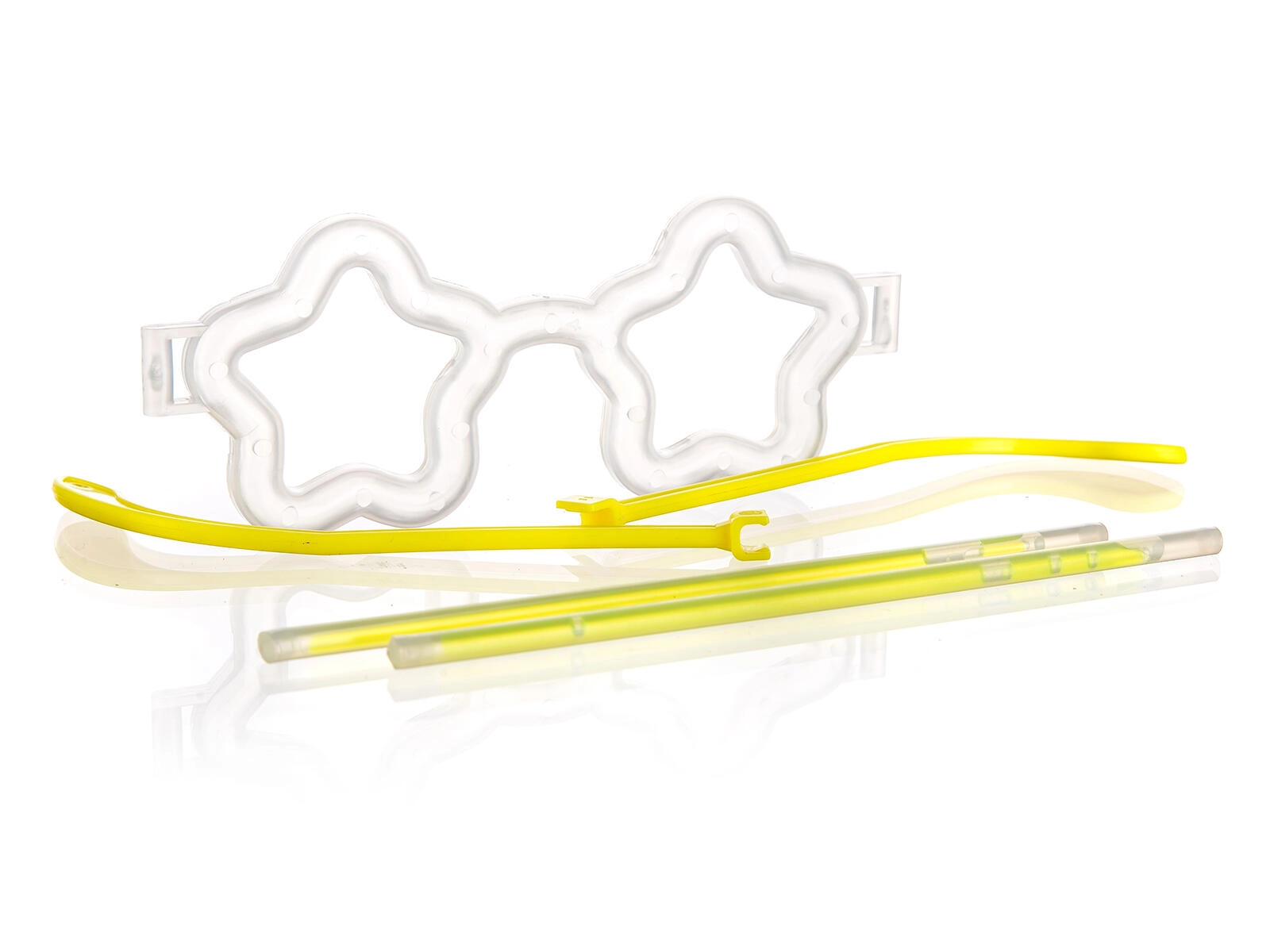 Ta svetleča zvezdasta očala spremenijo vsako zabavo, festival ali praznovanje v nepozaben barvni šov. Komplet vsebuje 1 kos okvirja in 2 kosa fluorescenčnih zapestnic, ki po aktivaciji in vstavitvi v okvir ustvarijo svetleče zvezdaste leče.