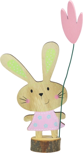 Vnesite v interier prijetno atmosfero z leseno dekoracijo zajčka na štoru. Dekor je vsestranski za spomladansko okrasitev, veliko noč in celoletno razstavljanje. Naravna površina lesa poudari letnice in se zlahka vklopi v skandinavski, podeželski in moderen slog.