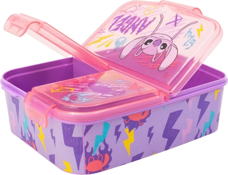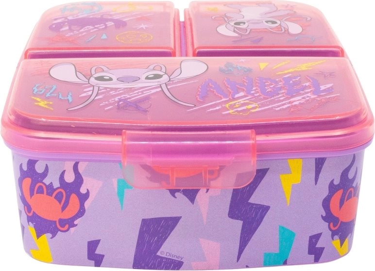Praktična večnamenska škatla za prigrizke z motivom Angel ponuja 3 ločene predelke za popolno organizacijo malice. Izdelana je iz vzdržljive plastike brez BPA, ima zanesljivo zapiranje in zaradi igrive zasnove jo bodo otroci vzljubili za v šolo, na krožke in izlete.