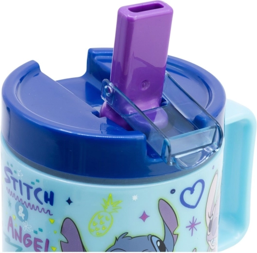 Slogovni plastični lonček s pitnikom in motivom STITCH je zasnovan za otroke, ki cenijo zabaven dizajn in enostavno uporabo. Zahvaljujoč navojnemu pokrovu in tesnilnemu zamašku se pijača ne razliva, zato je lonček odličen za vrtec, izlete in dom.