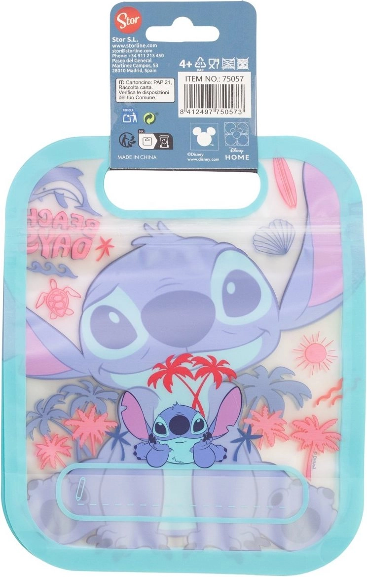 Ohranjajte red v slogu s kompletom 4 večkrat uporabnih vrečk DISNEY Stitch. Zahvaljujoč zanesljivi zadrgi so vaši prigrizki, kozmetika ali drobnarije vedno varno zaprti – doma, v šoli ali na poti. Vesel motiv Stitch vaš vsakdan popestri z igrivim pridihom.