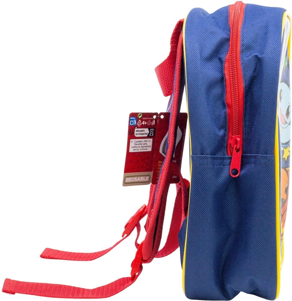 Sprednja ploskev s Pikachujem, Squirtlom, Bulbasaurjem in Charmanderjem nahrbtniku doda igriv videz in spodbuja veselje pri vsakodnevnem nošenju.
