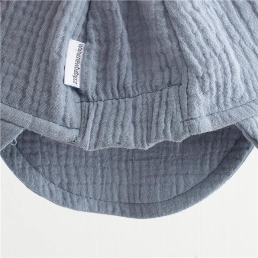 Praktičen šilt ustvarja prijetno senco in ščiti oči ter obraz pred močnim soncem. Muslinasta struktura ni le prijetna na dotik, temveč tudi zelo trpežna – z vsakim pranjem je material mehkejši, hkrati pa ohranja obliko in funkcionalnost. Odlična izbira za poletje, za vsakodnevno nošenje v vozičku in na igrišču.