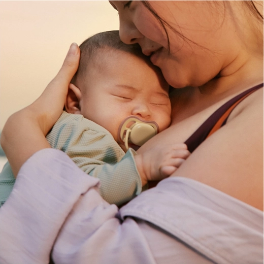 Mehak, vzdržljiv in 100-odstotno živilski silikon podpira naraven razvoj dlesni in zob. Teksturirana površina posnema občutek dojke – 98 % sprejemljivost.