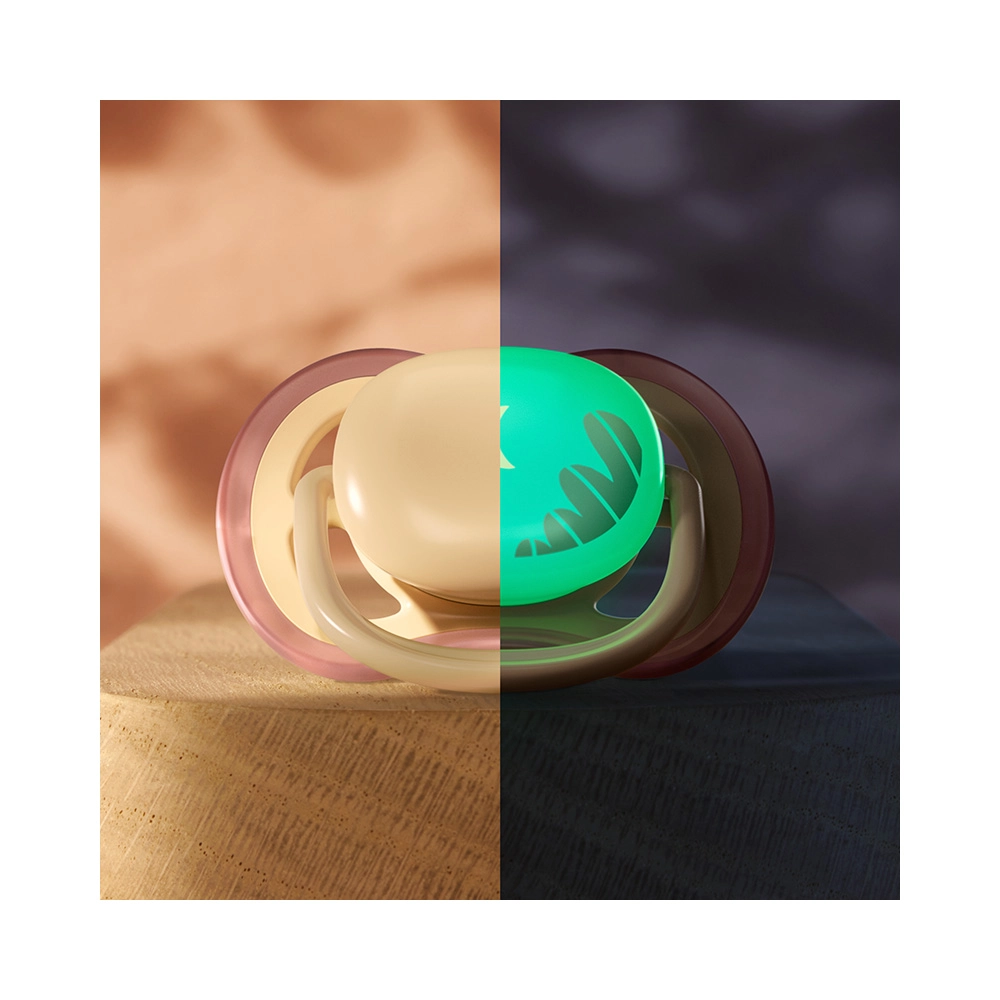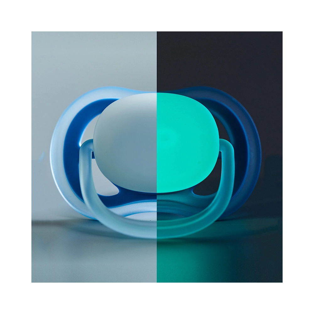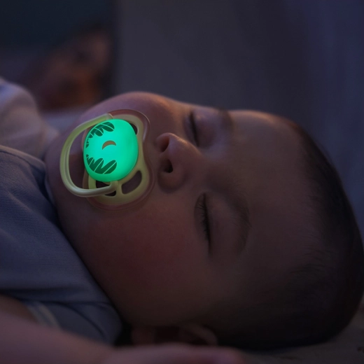 Nočna različica Ultra Air ima nežno svetleč sredinski del, zato dudo v temi hitro najdete brez prebujanja dojenčka z prižiganjem luči.