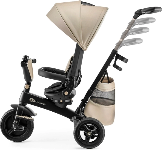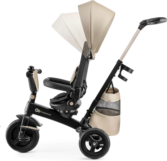 Odkrijte svet skupaj z otrokom na triciklu Kinderkraft EASYTWIST. Lahek in vzdržljiv magnezijev okvir, 360° vrtljiv sedež z nastavitvijo v polležeč položaj ter modularna zasnova, ki raste z otrokom, zagotavljajo udobje in varnost od 9 mesecev do 5 let. Nezračne PU gume, pettočkovni pasovi, vodoodporna strešica z UPF 50+ in teleskopski starševski ročaj naredijo ta tricikel idealno izbiro za vsakodnevne sprehode.