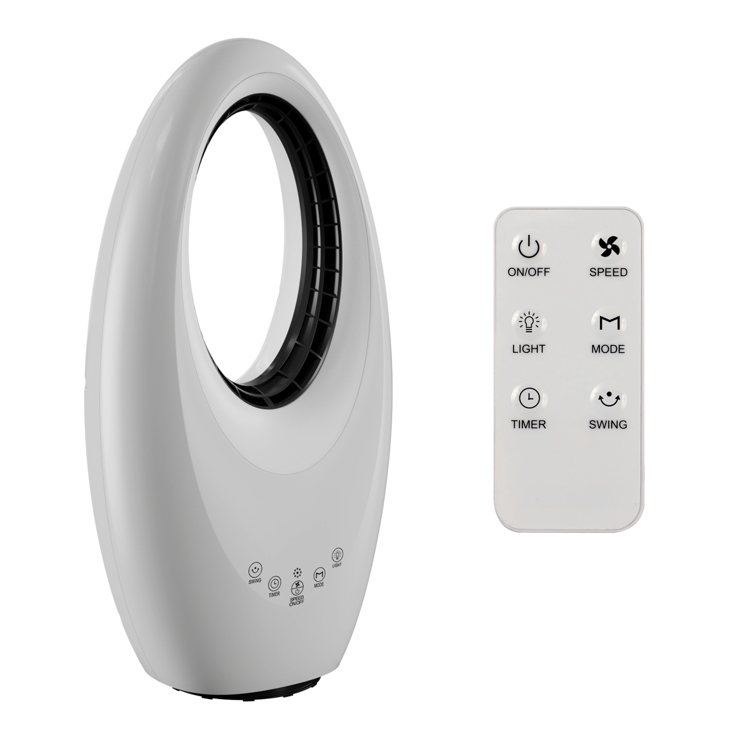 Uživajte v udobnem hlajenju z ventilatorjem, ki združuje elegantno brezkrilno zasnovo, visoko varnost in preprosto upravljanje. Tih način delovanja je odličen za delo in spanje, kompaktne mere pa se podajo tako na mizo kot na komodo.