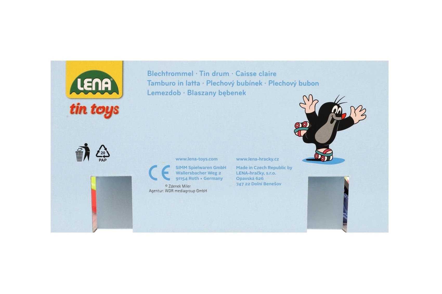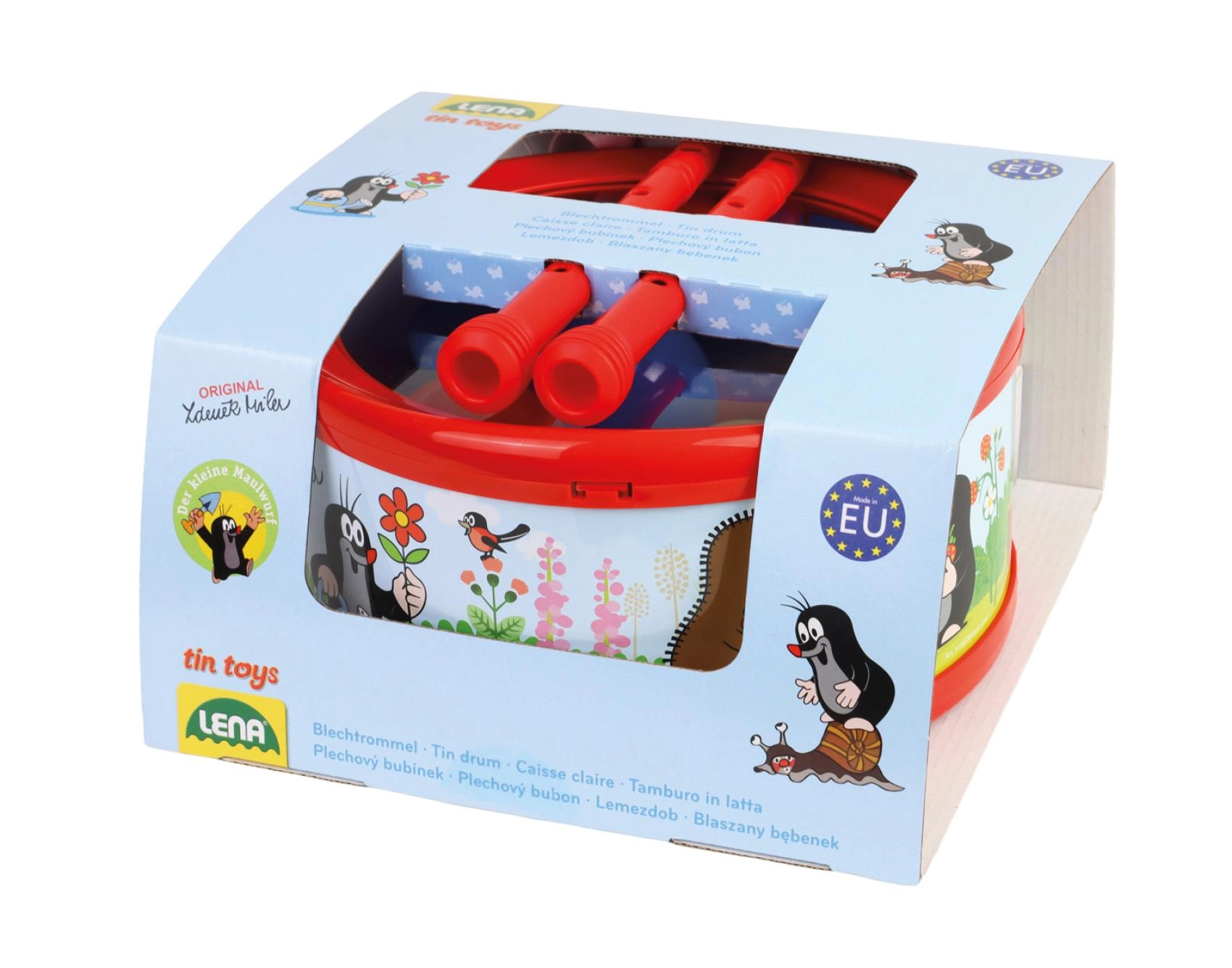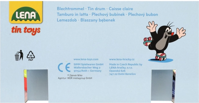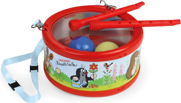 Otroški pločevinasti boben z priljubljenim motivom KRTEK bo razveselil male glasbenike. Priložene so paličice, ki jih je mogoče uporabiti tudi kot piščali, v notranjosti bobna pa so balončki za še zabavnejši zvočni učinek.