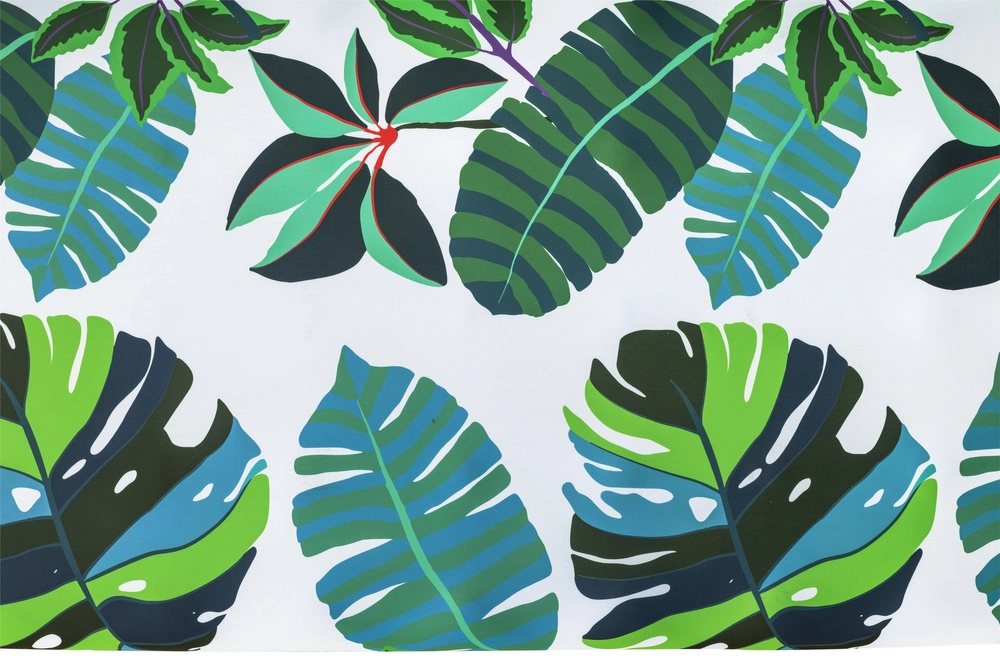 Eleganten potisk palmnih listov v odtenkih zelene in modre doda slog vsakemu bazenu in ustvari počitniško vzdušje.