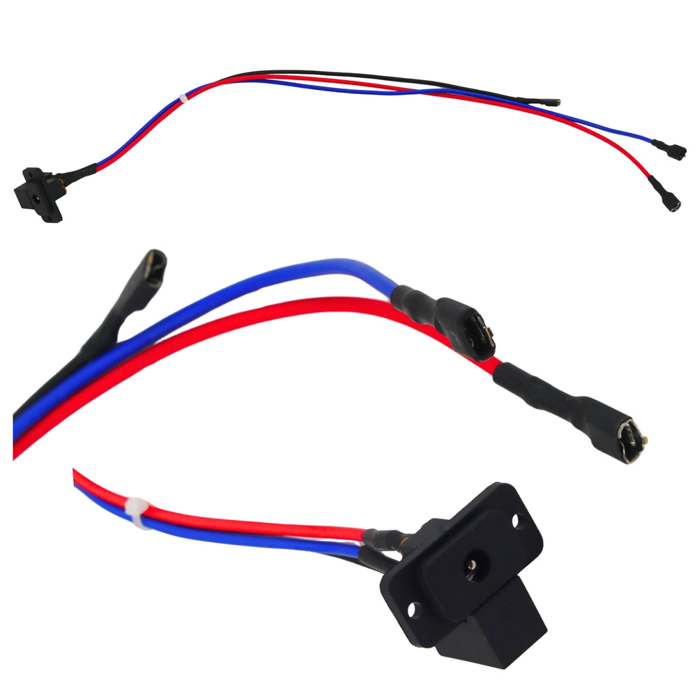 Robusten montažni blok z odprtinama za vijaka zagotavlja trdno pritrditev v panel ali karoserijo igrače. Zaključeni konektorji z izolacijo poenostavijo namestitev in zmanjšujejo tveganje napačne priključitve.