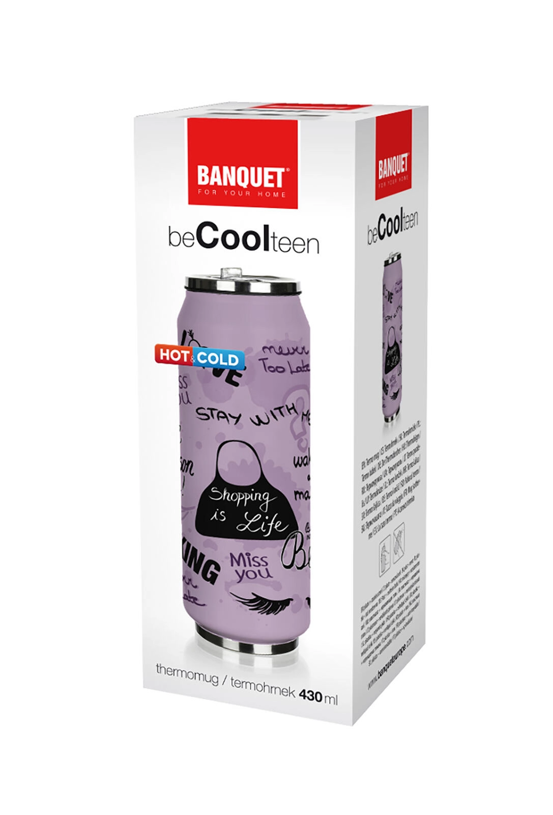 Odkrijte priročno in zabavno vijolično termovko v obliki pločevinke, ki odlično sede v roko in ohranja napitek pri idealni temperaturi. Zahvaljujoč dvoslojni nerjavni konstrukciji boste lahko uživali tako v vročem čaju kot v osvežilni limonadi kadar koli čez dan.