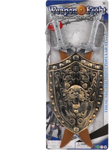 Praktično pakiranje z meči in ščitom, pripravljeno za takojšnjo zabavo. Odlično kot darilo za male ljubitelje srednjega veka in fantazije.