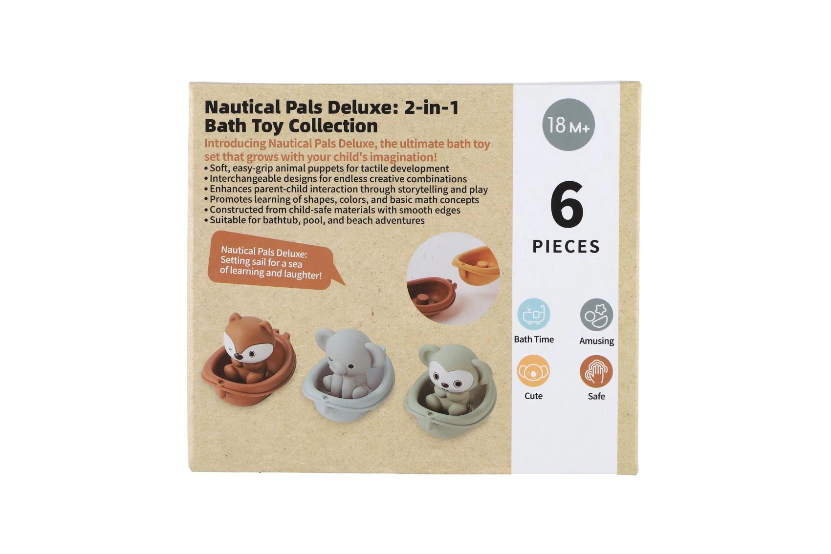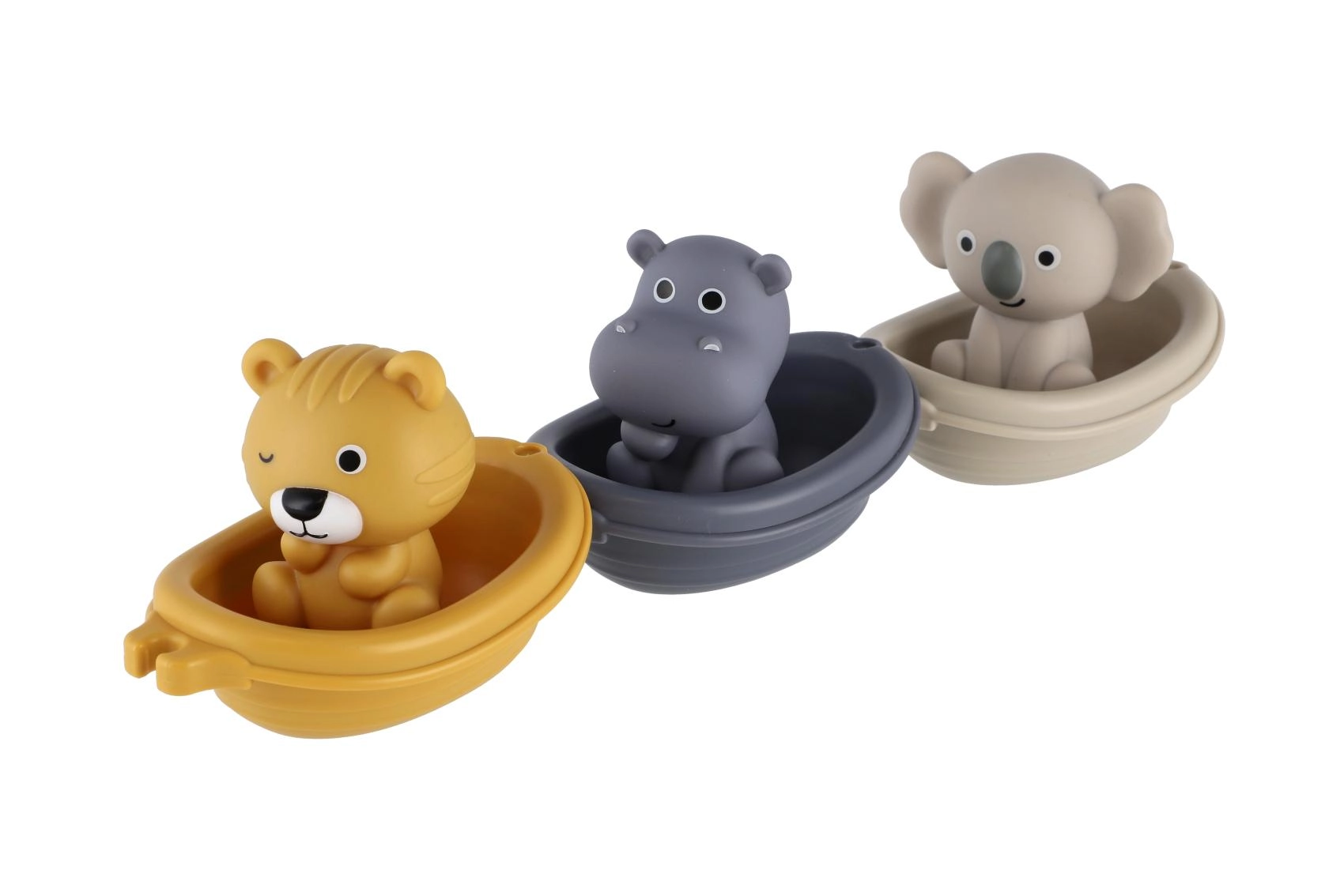 Ta igrivi kopalni komplet prinaša otrokom veliko zabave v kadi ali otroškem bazenčku. Živalice v čolničkih so zasnovane z gladkimi, zaobljenimi oblikami za varno igro, enostavne so za držanje in lepo plavajo na vodi. Zaradi prijetnega, mehkega materiala so idealne za malčke in vsakodnevne vodne vragolije.