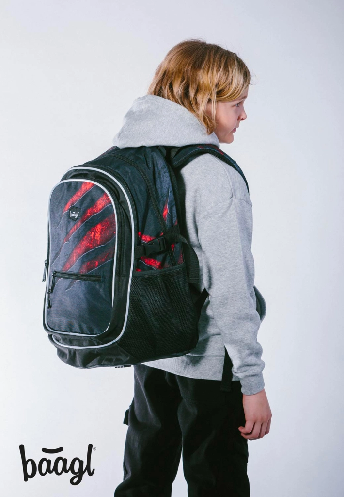 Šolski set BAAGL CORE Lava prinaša vse, kar šolar potrebuje – od udobnega nahrbtnika z ergonomsko oblikovanim hrbtnim delom do praktičnih dodatkov v enotnem slogu. Nahrbtnik nudi tri predelke z organizatorjem, žep za 15" prenosnik ali tablico, stranske mrežaste žepe ter odsevne elemente za večjo varnost. Z le 820 g in prostornino 25 l je idealen za vsakdanjo uporabo.