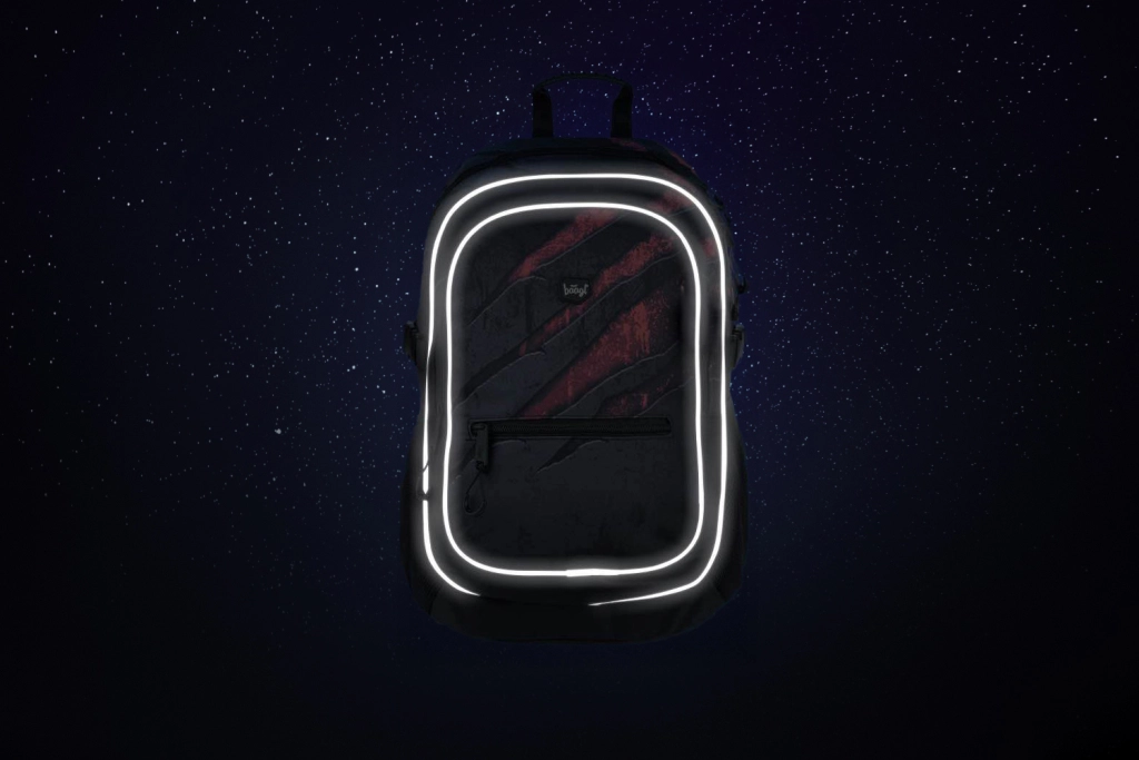 - Ergonomija in varnost – oblikovan hrbtni del, nastavljive naramnice, prsni in kompresijski trakovi, odsevni detajli.