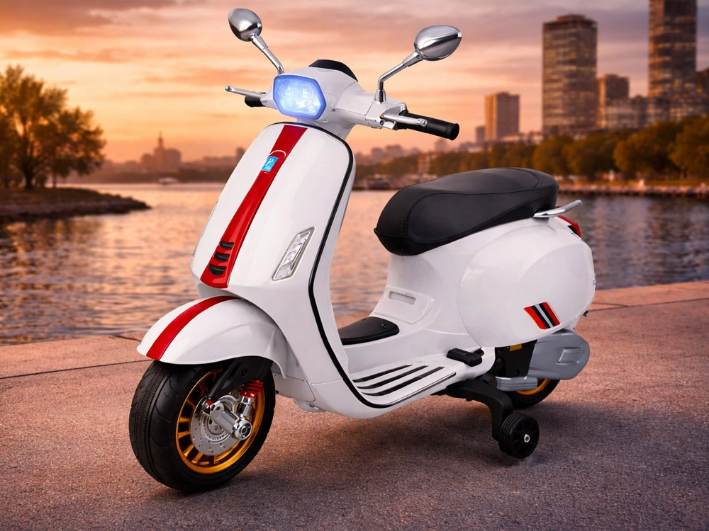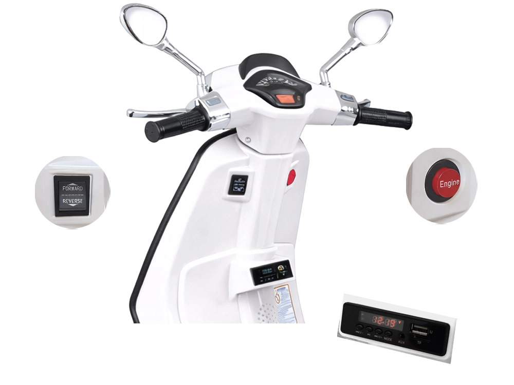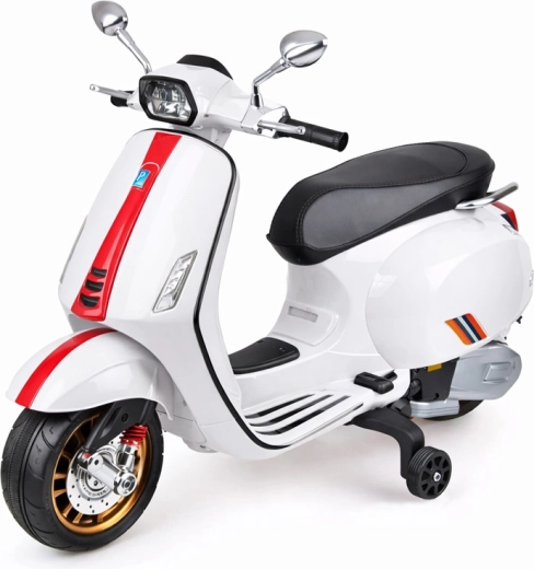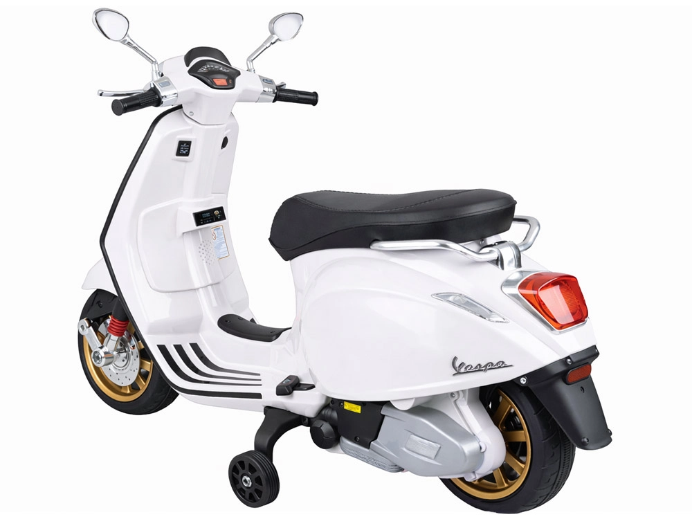 Otroški električni skiro VESPA z melodijami in pomožnimi kolesci – Bela