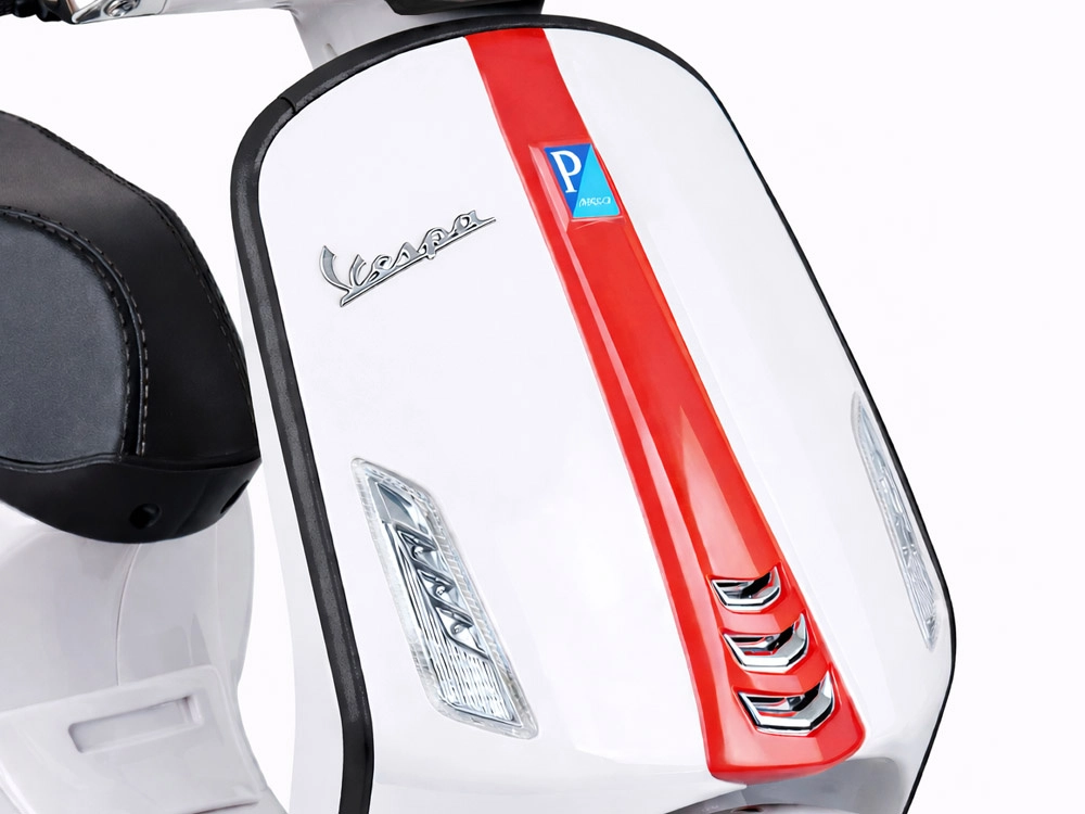 Svetel sprednji žaromet izboljša vidljivost in skuterju doda avtentičen videz ikonične VESPE.