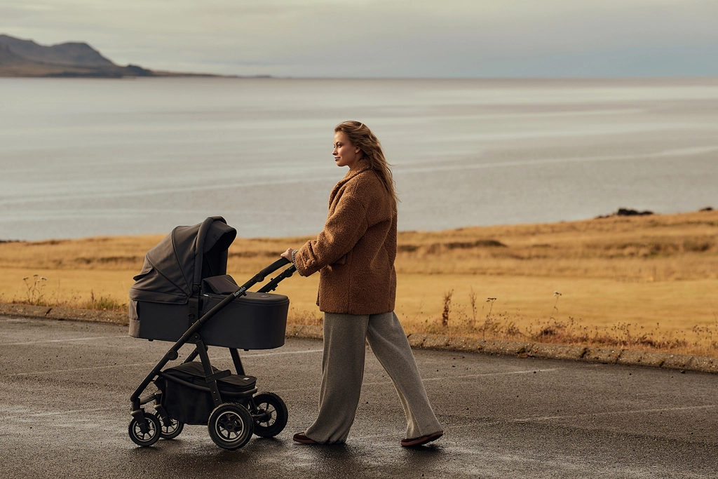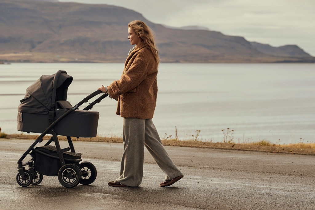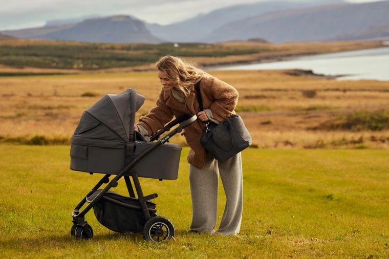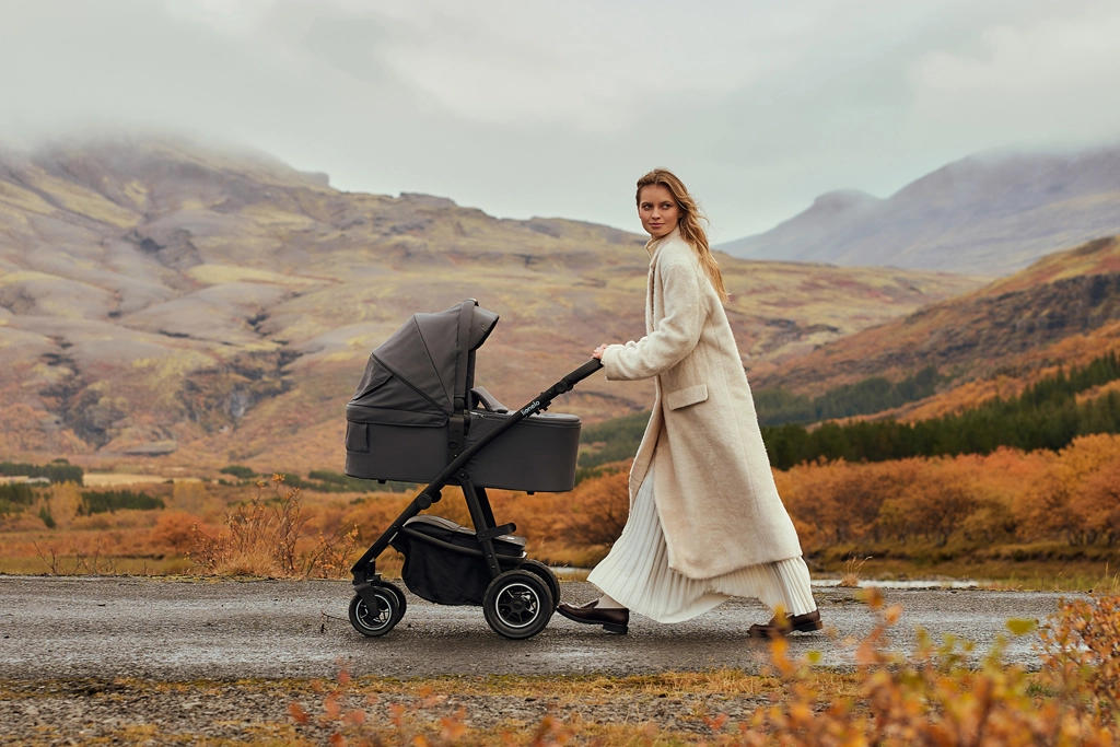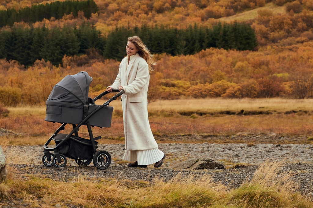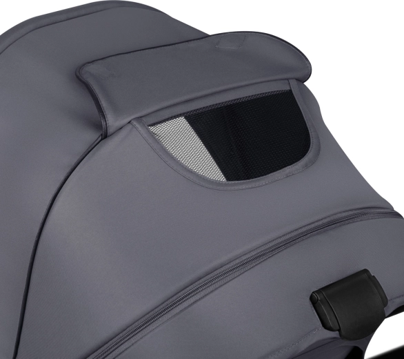 Vzdržljive vodoodbojne tkanine z zunanjim filtrom UPF+ ostanejo elegantne in so enostavne za vzdrževanje. Napihljiva kolesa z globokim profilom, dvojno vzmetenje spredaj in zadaj ter zaklep sprednjih koles (360°) omogočajo gladko vožnjo tudi po neutrjenih poteh. 3D panoramsko prezračevanje z magnetnimi zapirali zagotavlja optimalen pretok zraka v vročih dneh. Prostrana košara s pokrovom na zadrgo ščiti nakupe in nujne potrebščine pred prahom.