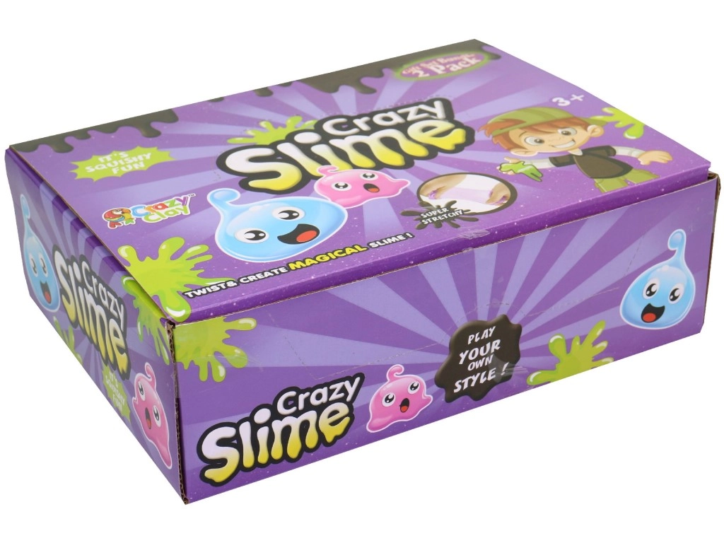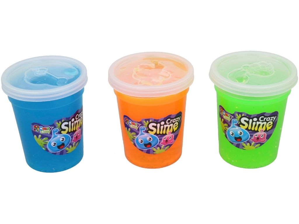Set Crazy Slime prinaša barvit svet ustvarjanja za otroke od 3. leta naprej. V pakiranju je 12 lončkov v živahnih odtenkih – vijolična, oranžna, rdeča, rumena, modra in zelena. Sluz je prijetno gumijasta, raztegljiva in se ne lepi, zato vabi k stiskanju, oblikovanju in senzorični igri.