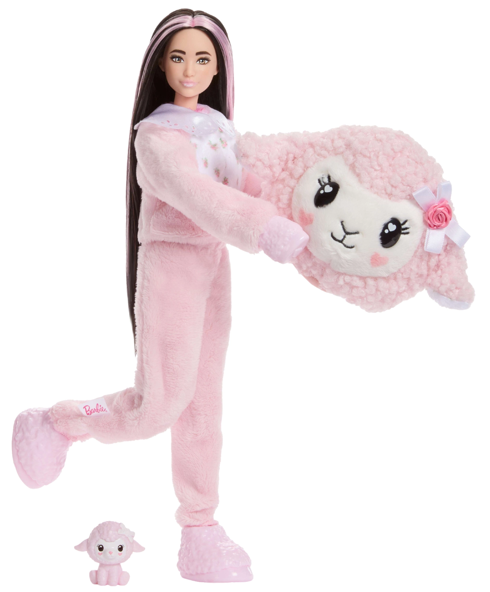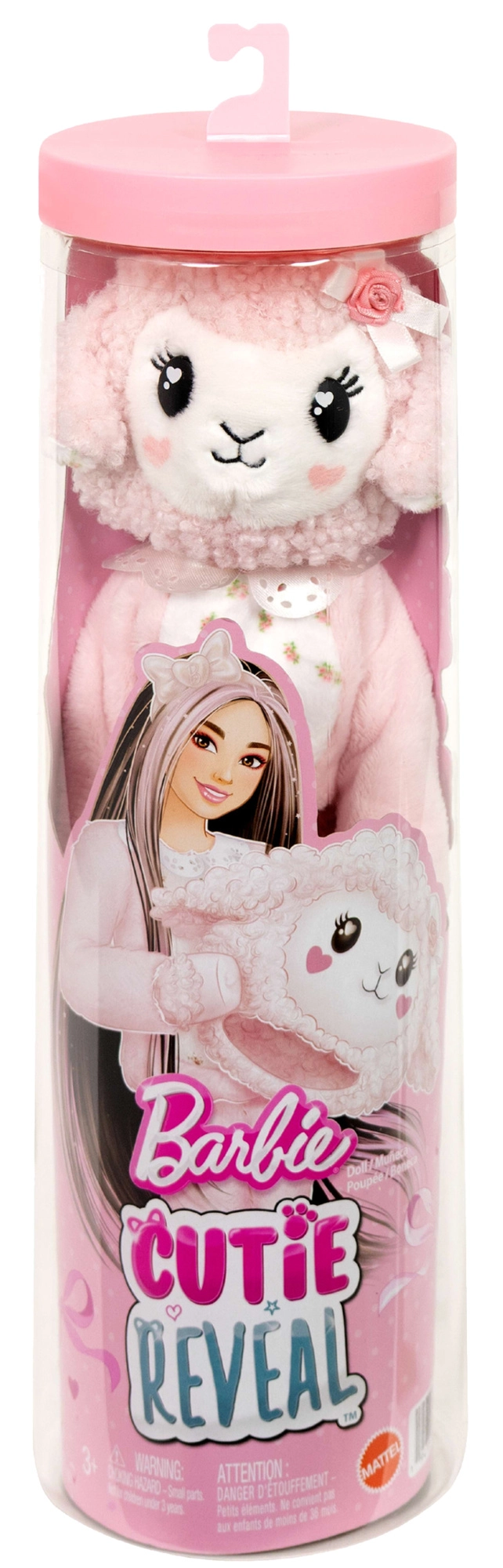 Vstopite v svet presenečenj in ljubkega sloga. Punčka je skrita v mehkobnem kostumu rožnate ovčke z vzorcem pentljic. Po razkritju najdete punčko BARBIE z dolgimi lasmi, pripravljeno na česanje in preoblačenje. Obleko lahko obrnete na notranjo stran in jo spremenite v modno jakno, glava kostuma pa služi kot ležišče za mini živalco.