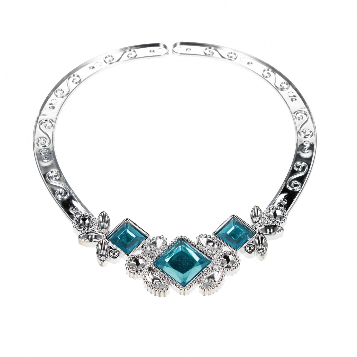 Ornamentna ogrlica s tremi modrimi kamenčki čudovito dopolni diadem in zaokroži celoten princeskin videz.