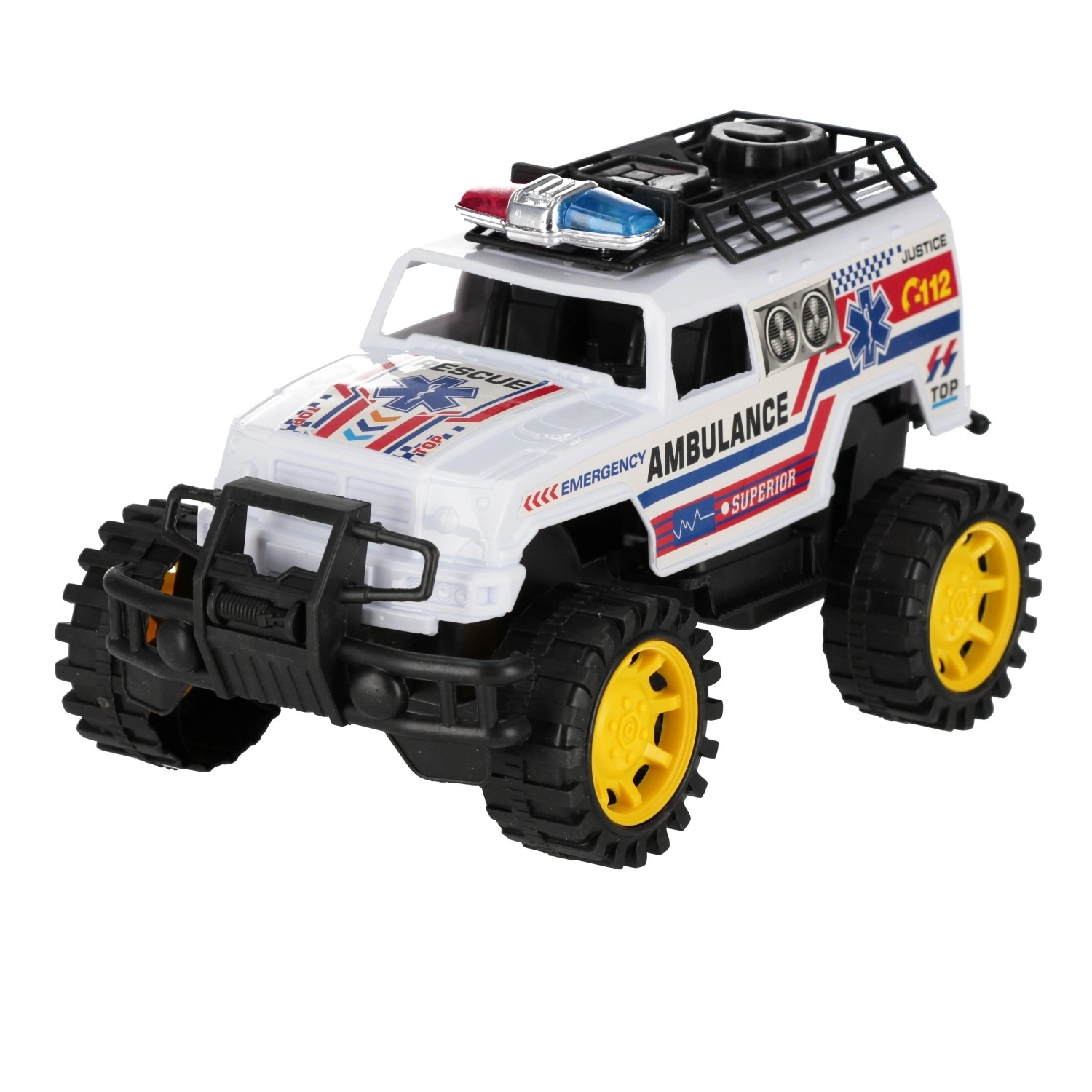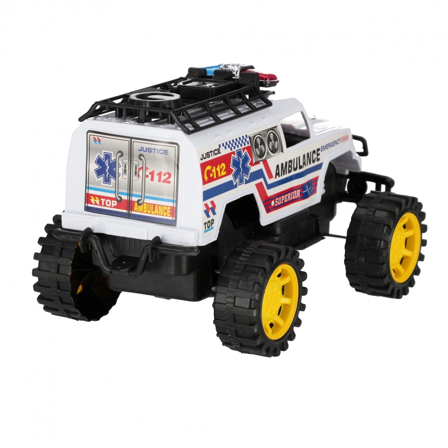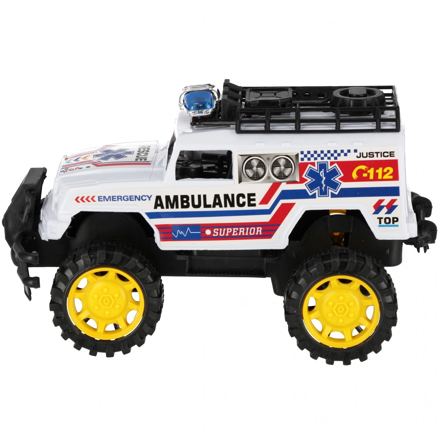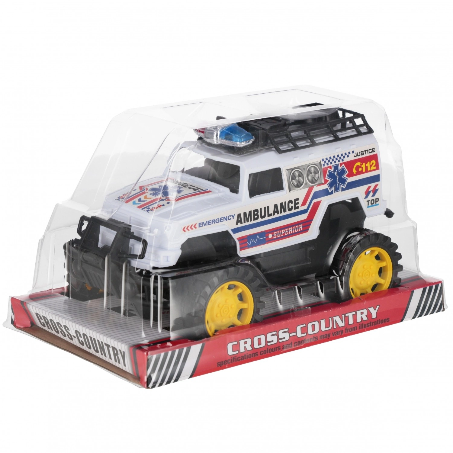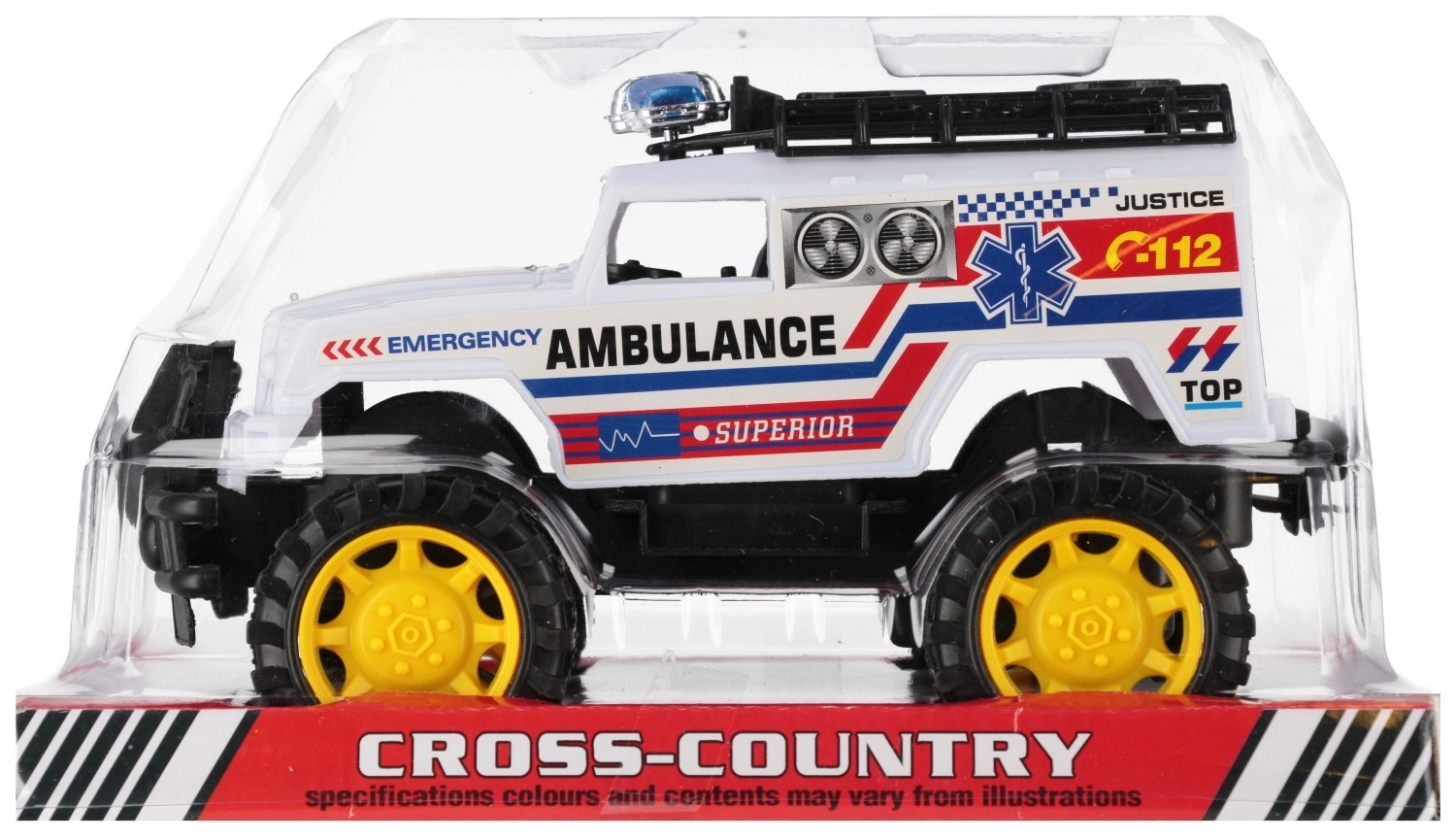 Odkrijte zabavno reševalno vozilo, ki se po navijanju samo požene naprej zahvaljujoč funkciji pull-back. Robustna terenska izvedba z velikimi kolesi, svetlobnimi elementi in napisom AMBULANCE spodbuja domišljijo ter razvija fino in grobo motoriko otrok. Idealna velikost 22 cm za dinamično igro doma in na vrtu.