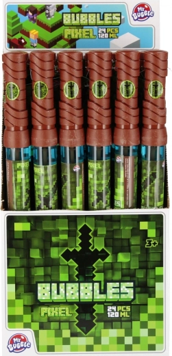 Zabaven ustvarjalnik mehurčkov v obliki meča z motivom Pixel in prostornino 120 ml pričara množico pisanih mehurčkov pri igri na prostem, na zabavah in festivalih. Dovolj je, da konec pomočite v tekočino in z mahanjem ali pihanjem ustvarjate oblak mehurčkov – idealno za male pustolovce. Prodaja po 1 kosu.
