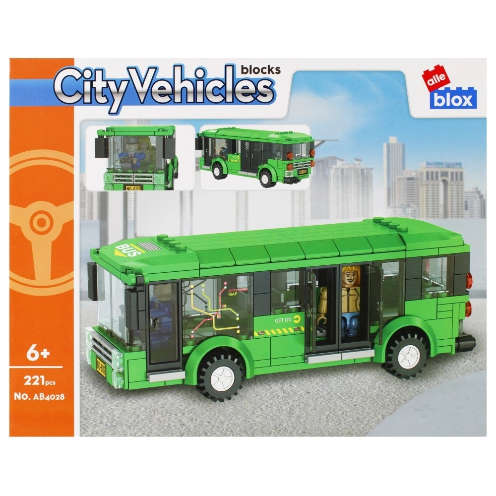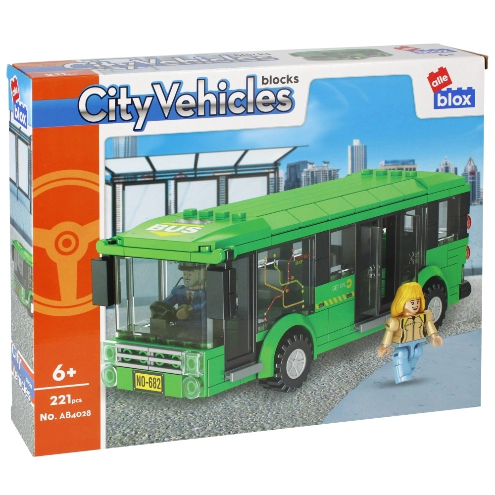 Zgradite svoj mestni promet s konstrukcijskim kompletom AlleBlox City avtobus. Set vsebuje 221 kosov in 2 figurici, iz katerih nastane podroben zeleni avtobus z premičnimi vrati in prosto vrtečimi se kolesi. Kocke iz mehkega, prijetnega plastika se enostavno sestavljajo, so združljive z drugimi kompleti ter razvijajo ustvarjalnost, logično mišljenje in fino motoriko.
