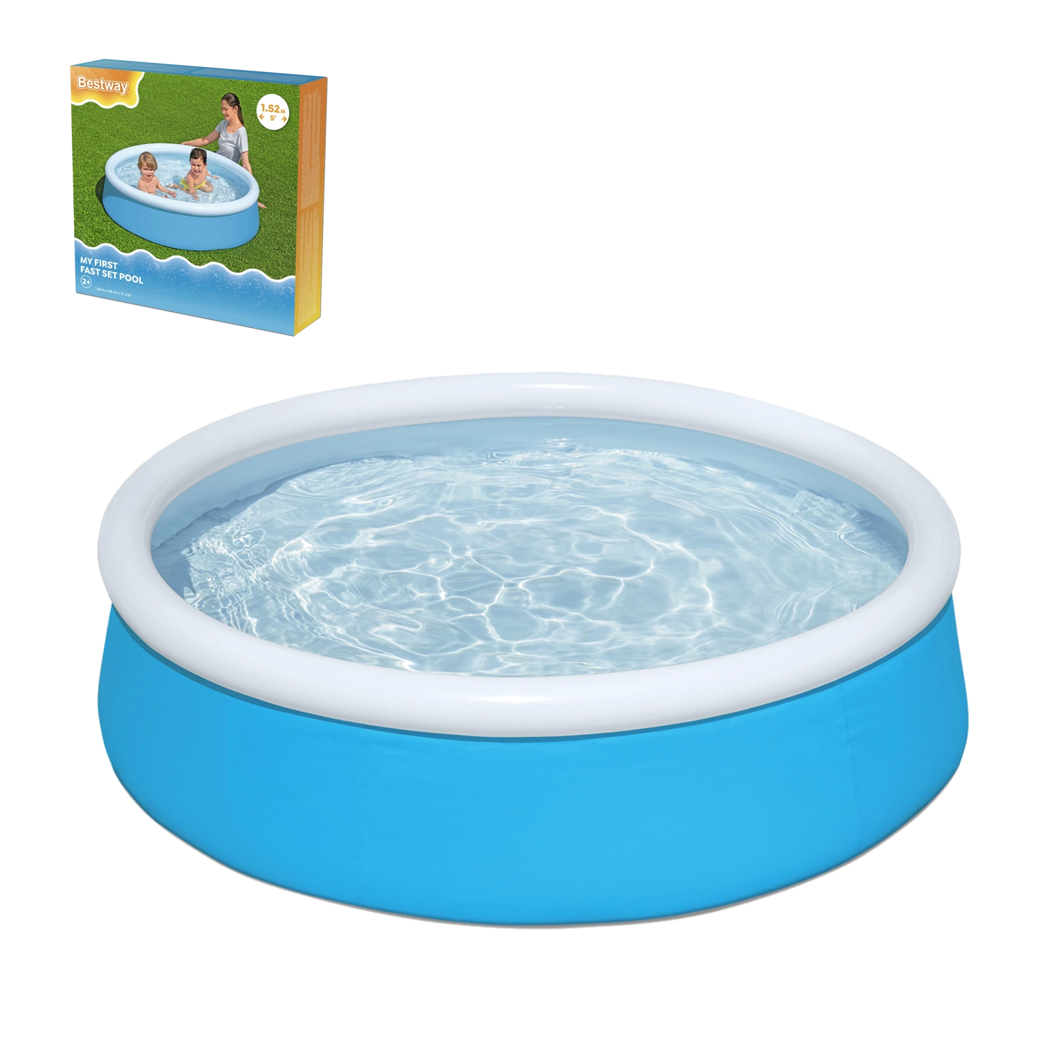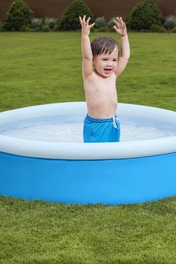 Zložljiva zasnova z napihljivim zgornjim obročem zagotovi, da je bazen pripravljen za vodne igre v nekaj minutah – brez orodja.