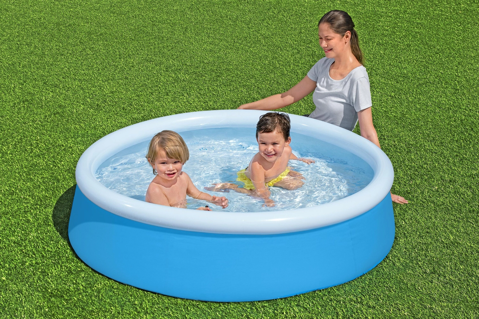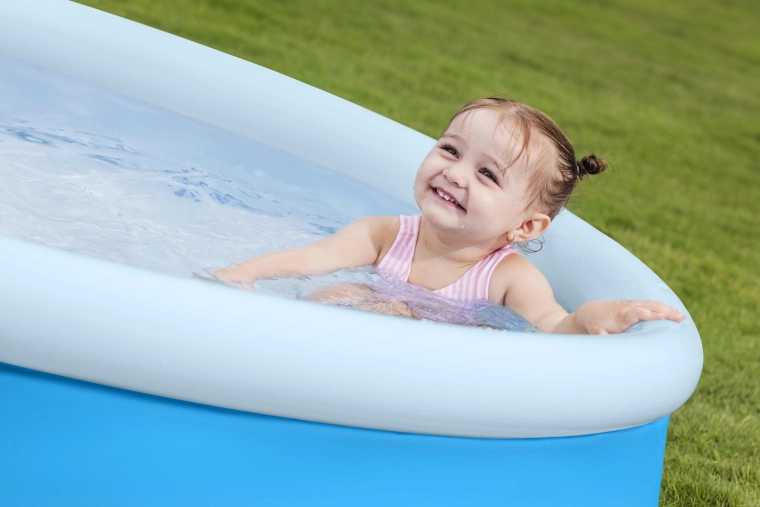 Večplastni PVC zdrži običajno uporabo. Po sezoni bazen hitro izpraznite, zložite in pospravite, da ne zaseda prostora.
