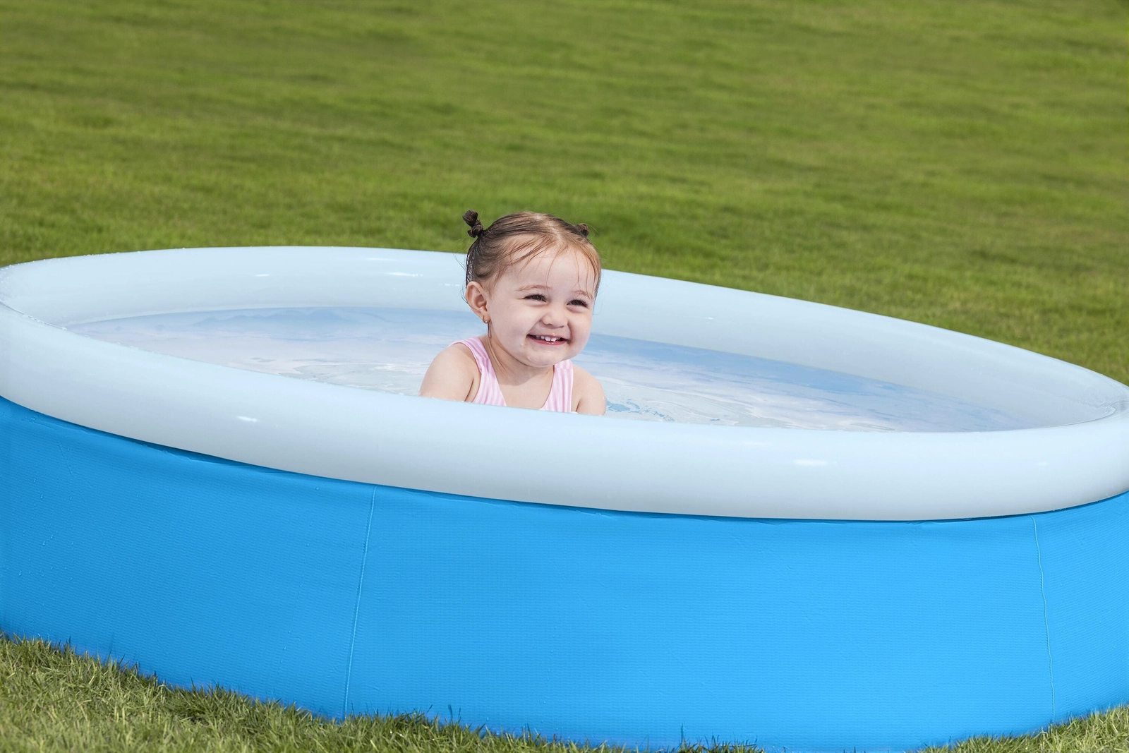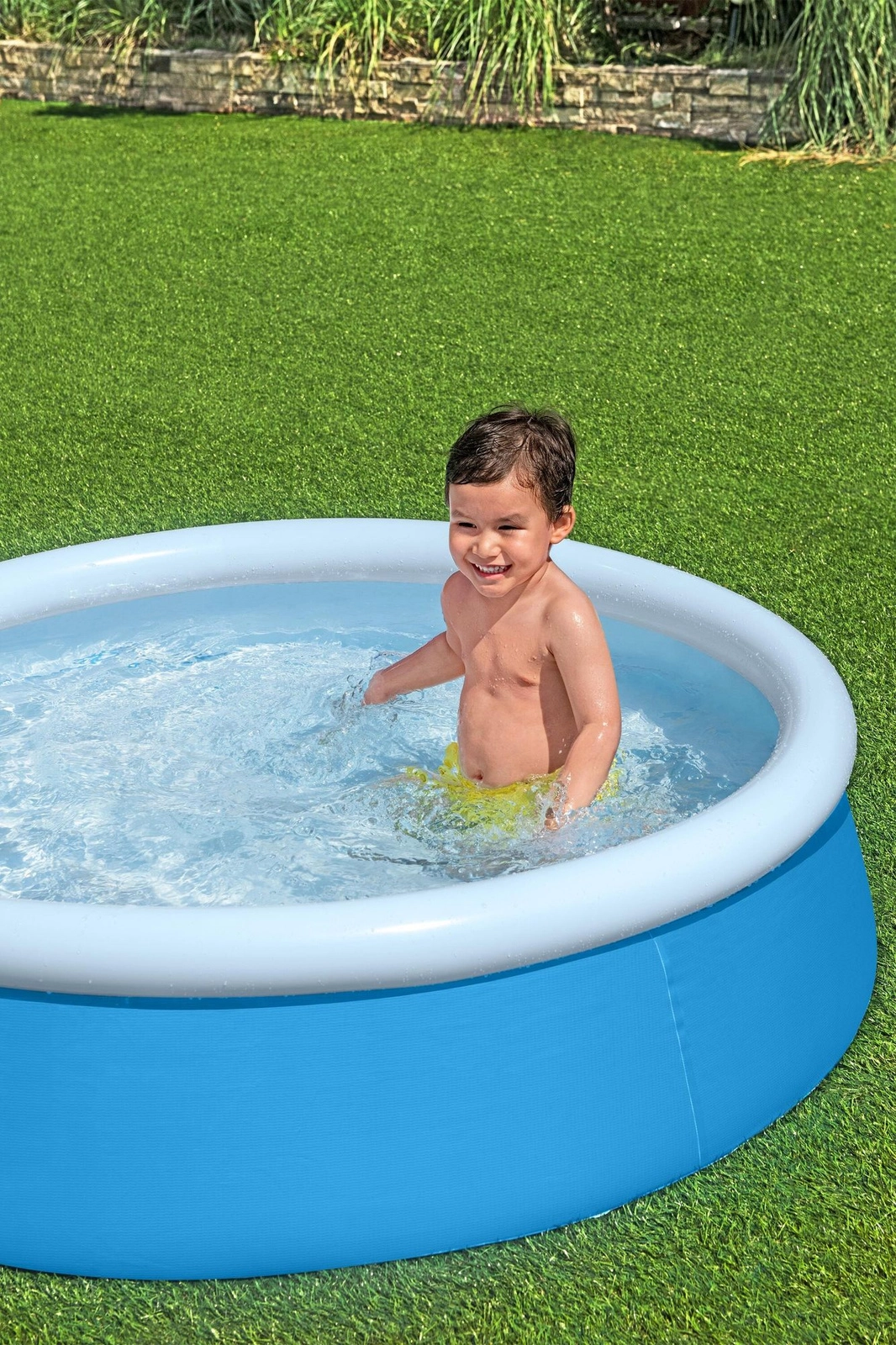 Mehek zgornji rob in plitva višina 38 cm zagotavljata udobje in večjo varnost pri otroških vodnih vragolijah.