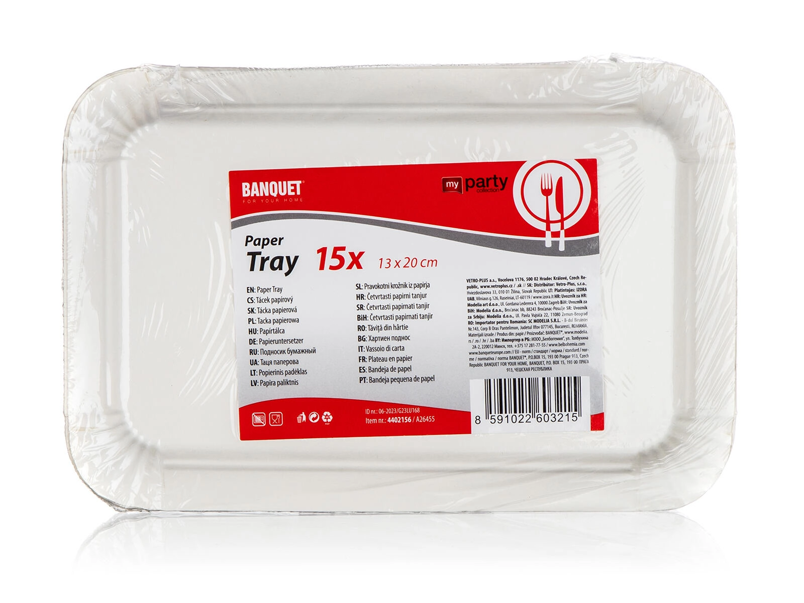 Poenostavite si serviranje na katerem koli dogodku z enkratnimi papirnatimi pladnji MY PARTY. Zaradi kompaktnih mer 13 × 20 cm so odlični za prigrizke, sladice, obložene kruhke ali žar specialitete. Po uporabi jih preprosto odvržete in prihranite čas ter delo.