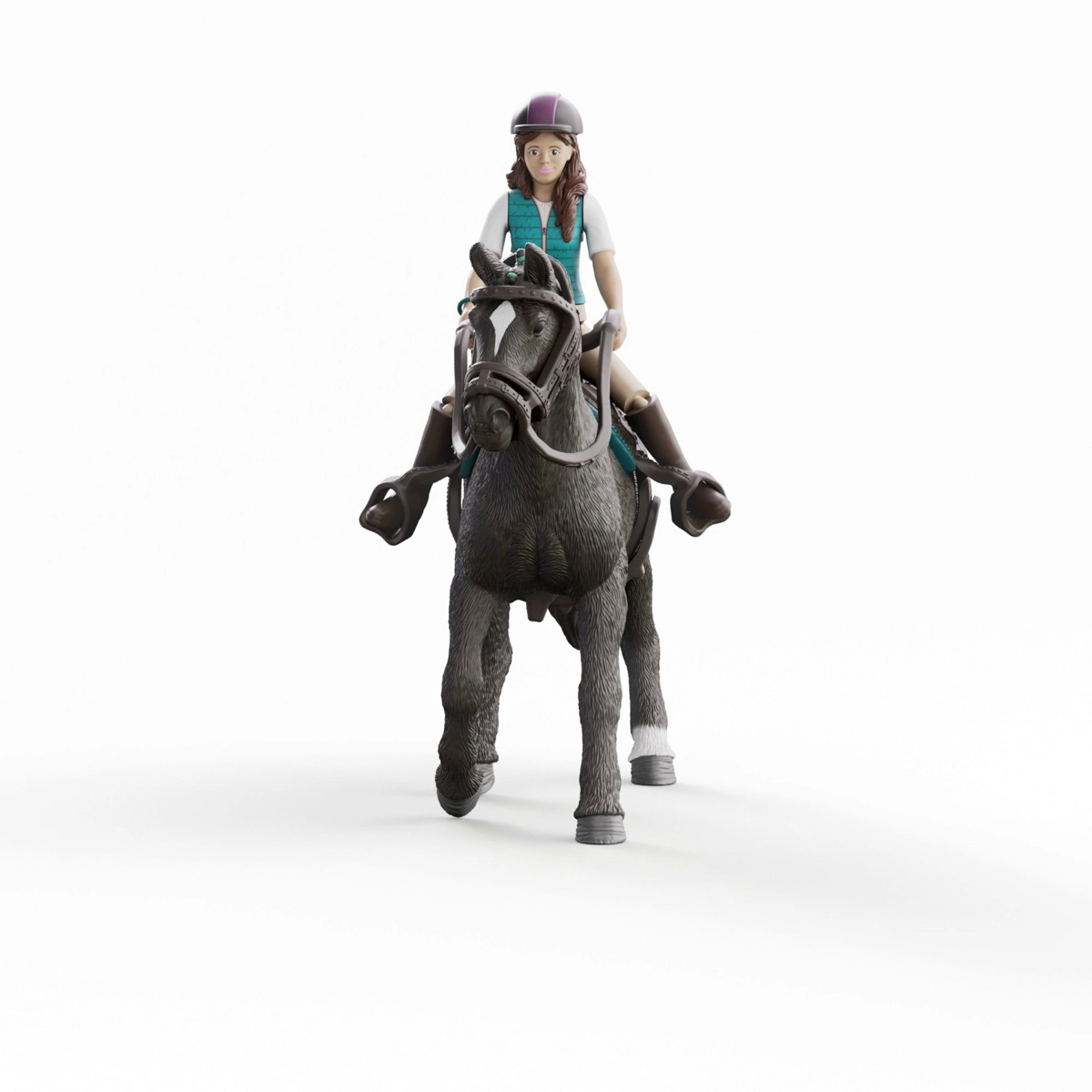 Figura jezdeke ima sklepe v ramenih, kolkih in glavi, zato jo zlahka posadite v sedlo ali postavite k negi konja. Odlično za realistične igralne scenarije.