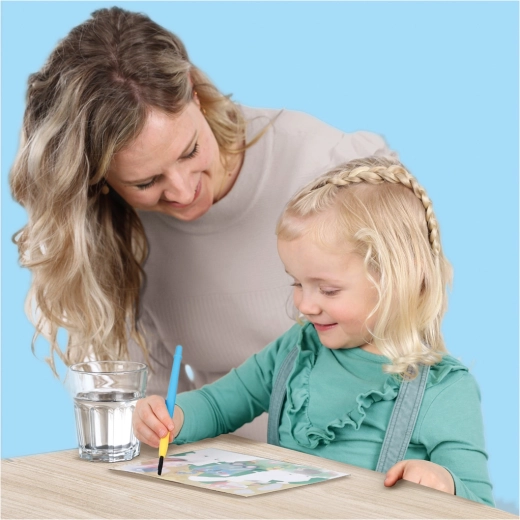 Vodene pobarvanke – kmetija prinašajo otrokom pameten in čist način ustvarjanja. Dovolj je, da pero napolnite z vodo in podrsate po slikici – barve se pojavijo same, brez flomastrov in brez madežev. Ko se posuši, se slike vrnejo v prvotno stanje in otroci lahko začnejo znova.