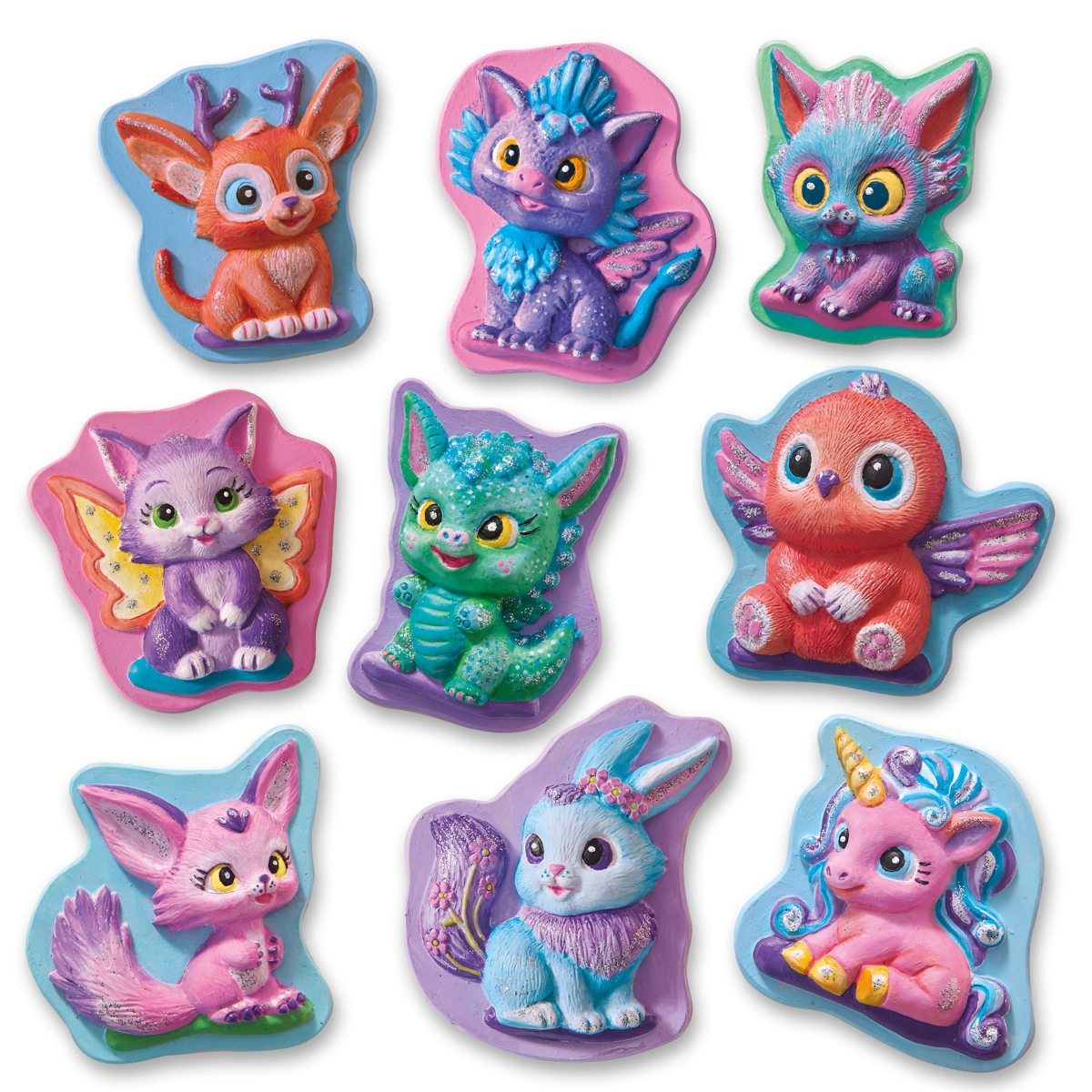 Odkrijte veselje do ustvarjanja s setom za vlivanje in barvanje prikupnih fantazijskih figuric. Ustvarite do 11 figuric, vključno z zmaji, samorogi in zajčki, ki jih okrasite s 6 živahnimi barvami in srebrnim bleščečim lepilom. Popoln ustvarjalni komplet z podrobnim vlivalnim kalupom je idealen za otroke od 5 let dalje ter za odrasle ljubitelje ustvarjanja.