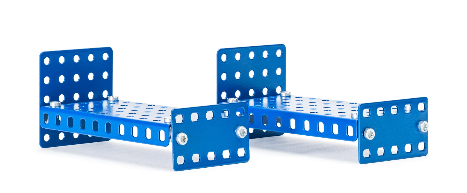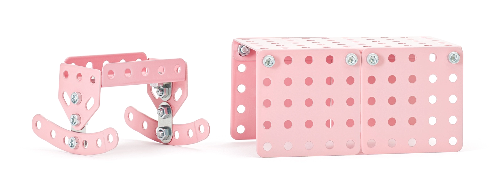 S kovinskim kompletom MERKUR otroci zlahka sestavijo realistične kose pohištva za hiško za punčke. Deli iz trdne kovine se povezujejo z vijaki in maticami, zato modeli držijo obliko, so stabilni in jih je mogoče vedno znova preurejati. Zaradi živih barv in univerzalnih perforiranih delov nastanejo deseci variacij po domišljiji.