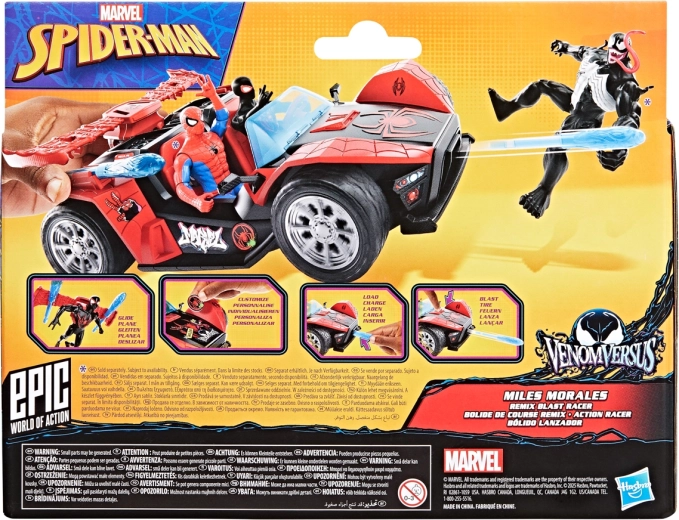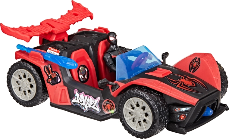 Poglobi se v akcijo z Milesom Moralesom in njegovim vozilom Remix Racer! Ta set v merilu 10 cm ponuja artikulirano akcijsko figurico, robusten avto za dve figurici iz serije Epic World of Action in izstreljevanje pajkovih izstrelkov za neskončne superjunaške zgodbe. Odstranljiv zadnji spoiler 2 v 1 se spremeni v jadralnik, priložene nalepke, navdihnjene z Milesom Moralesom, pa omogočajo prilagoditev vozila po domišljiji.