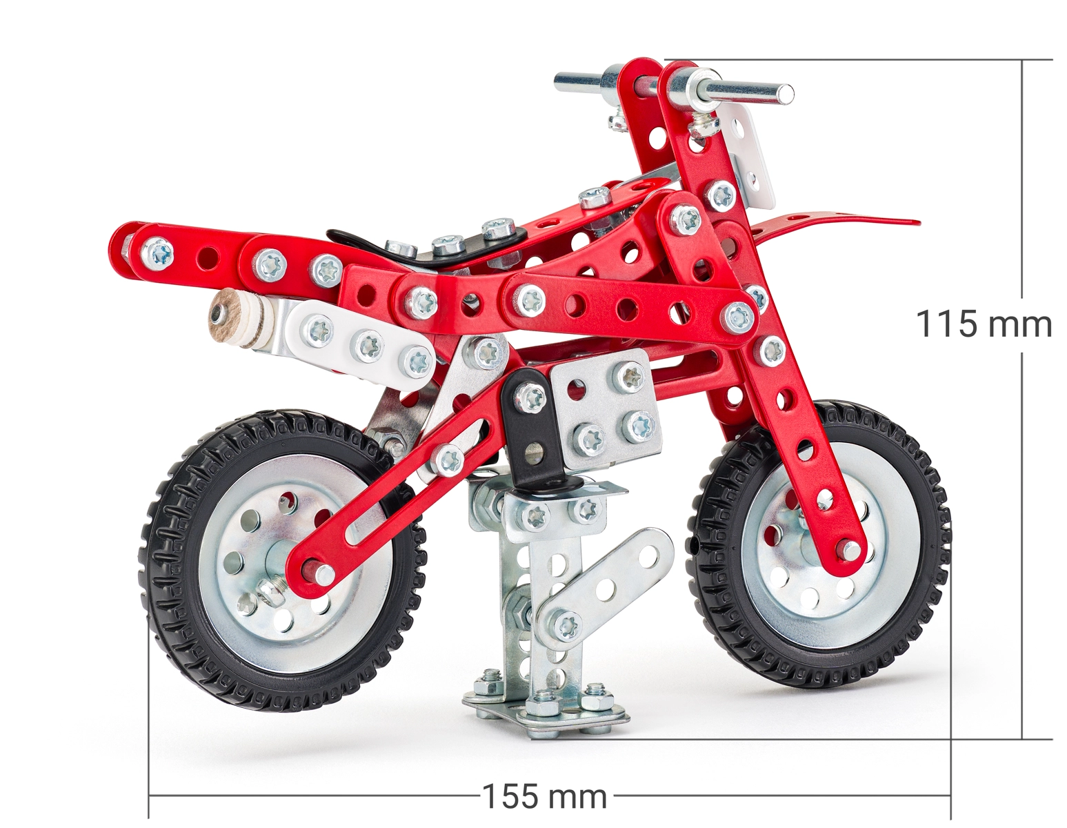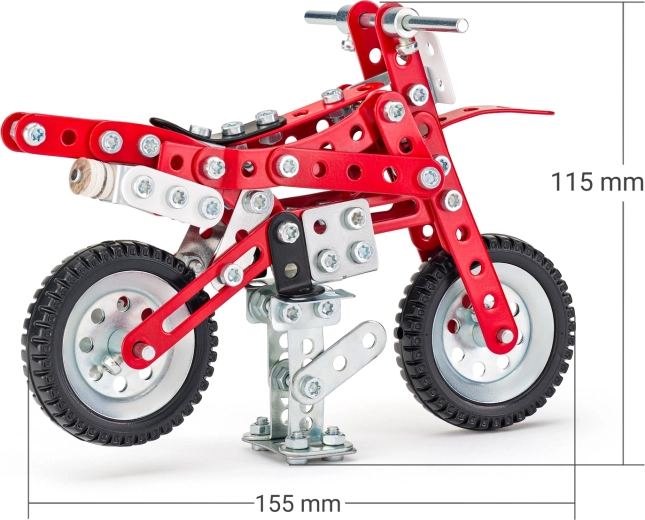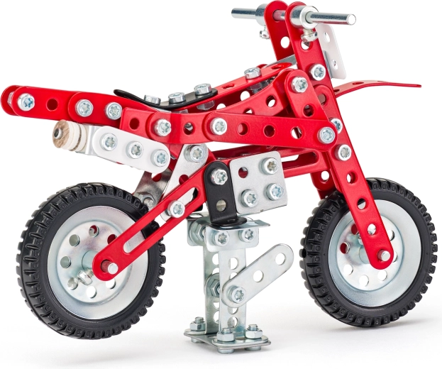 Sestavljanka Merkur Dirtbike je odlična izbira za male konstruktorje, ki imajo radi tehniko in ustvarjanje. Zahvaljujoč trdnim kovinskim delom in vijakom nastane privlačen model dirtbike motorja, ki navduši z videzom in stabilnostjo. Sestavljanka je zasnovana tako, da spodbuja koordinacijo roke in očesa, potrpežljivost in kreativnost.