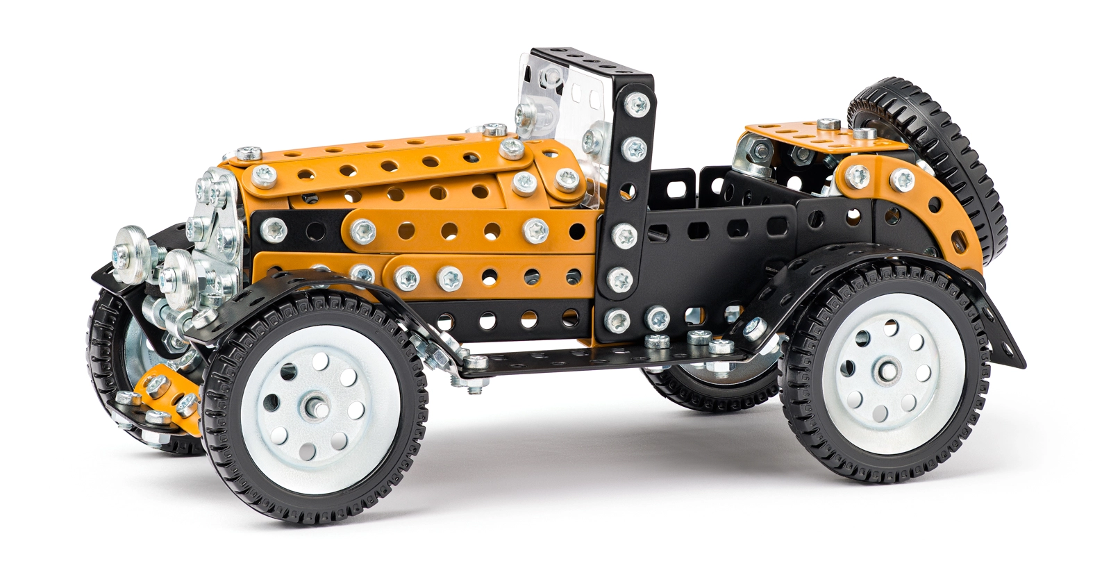 Sestavite si stilski veteran AERO iz vzdržljivih kovinskih delov in uživajte v urah zabave pri ustvarjanju. Sestavljanke MERKUR razvijajo tehnične spretnosti, domišljijo in osredotočenost – končni model bo navdušil vsakega malega in velikega ljubitelja konstrukcijskih setov.