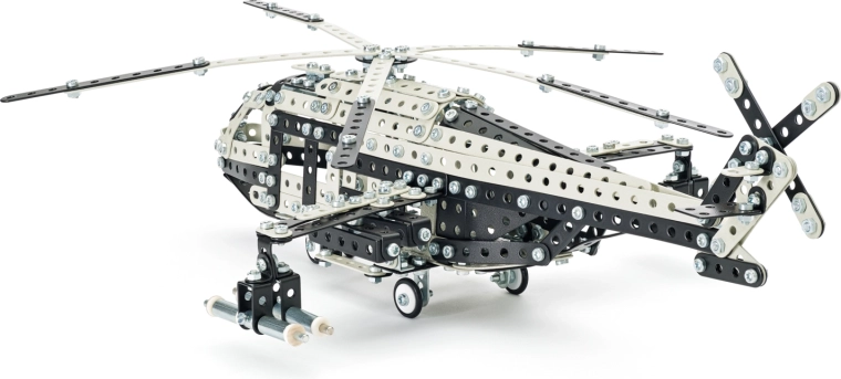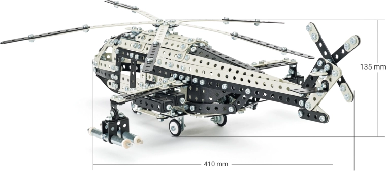 Praznujte 100 let tradicije češke konstrukcijske igrače MERKUR z kovinskim kompletom za sestavljanje legendarnega bojevnega helikopterja MIL MI-24. Komplet ponuja 746 kakovostnih kovinskih delov, ki se preprosto povezujejo s pomočjo vijakov, ter razvijajo fino motoriko, logično mišljenje in potrpežljivost. Idealno za mlade tehnike od 6 let, ki obožujejo ustvarjanje in tehnične izzive.