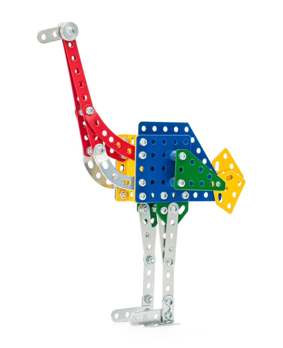 Odkrijte ustvarjalni svet gradbene sestavljanke MERKUR Zoo – noj s 106 kovinskimi deli, ki se preprosto povezujejo s pomočjo vijakov. Otroci ob sestavljanju razvijajo fino motoriko, logično mišljenje in potrpežljivost. Model noja doseže mere 22,5 × 4,5 × 19 cm in je idealen za male konstruktorje od 5 let naprej.