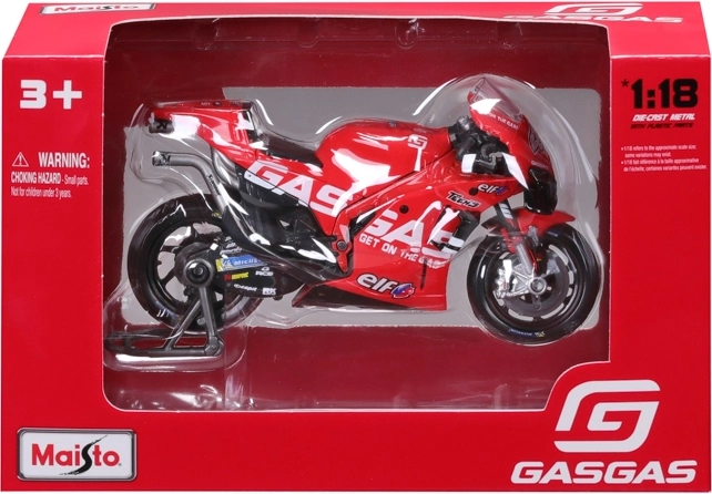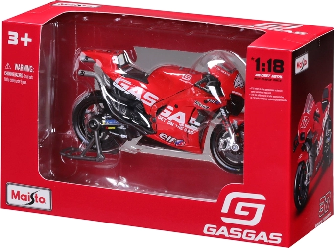 Ta uradno licenciran model znamke Maisto prinaša avtentično podobo dirkalnega posebneža GASGAS Factory Racing Tech3 iz leta 2023. Odlikuje ga realistična obdelava kaputaže, blažilnikov in zavornih kolutov, kar bo razveselilo zbiratelje in mlade navdušence nad motocikli.