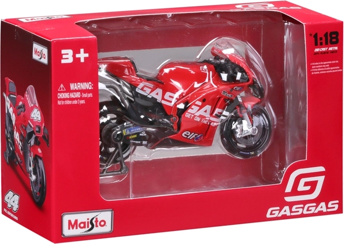 Podroben zbirateljski model dirkalnega motorja GASGAS Factory Racing Tech3 2023 v merilu 1:18 s številko 44 – Pol Espargaró. Kovinsko ohišje s plastičnimi elementi, prosto vrteča se kolesa in stojalo za razstavljanje. Uradno licenciran izdelek, verne barve in natančna izdelava detajlov.