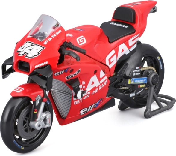 Verna kaputaža, številka 44 in ekipne nalepke GASGAS Factory Racing Tech3 dajejo modelu realističen videz kot na dirkalni stezi.