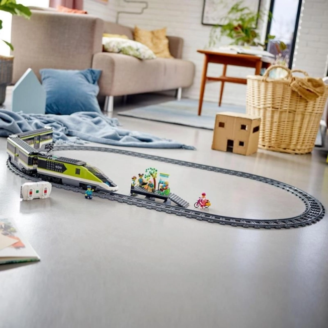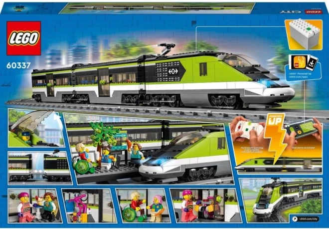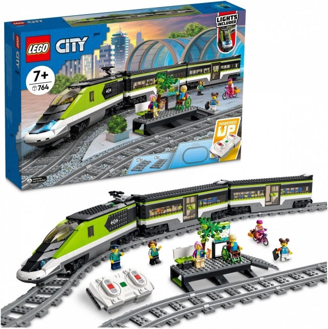 Zgradite lastno železnico z LEGO CITY hitrim vlakom 60337. Pridobite daljinsko upravljano lokomotivo z zatemnitvenimi žarometi (Powered Up), restavracijski in potniški vagon, peron, 24 kosov tirov in 6 minifigur za neskončne zgodbe in ustvarjalno igro.